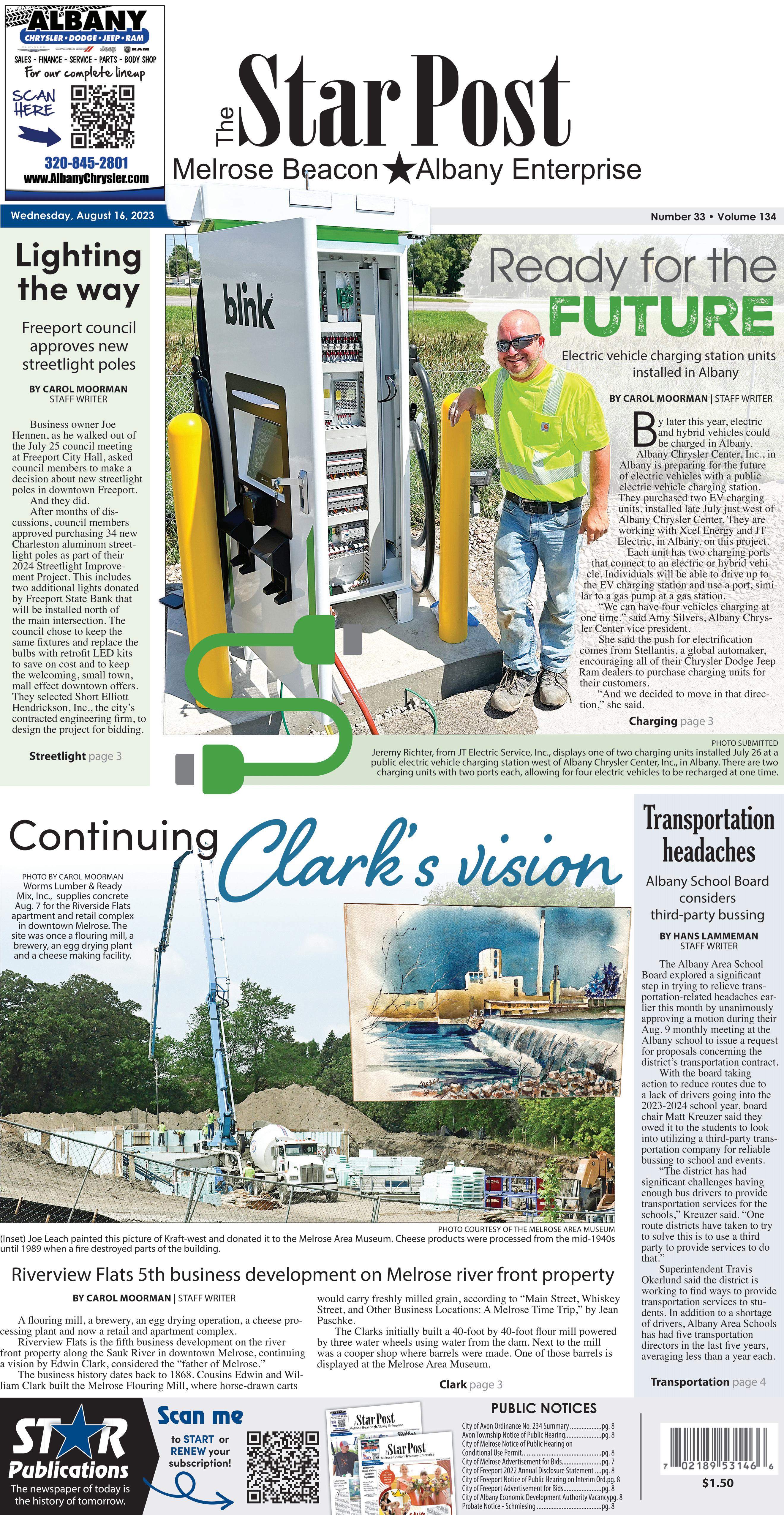 THE STAR POST | WEDNESDAY, AUGUST 16, 2023 | Page 3 NEWS What’s HAPPENING Albany Apartment FOR RENT 2 bedroom • 1 Bath $650/month, $100 deposit. No Dogs. Call for availability, Loreen 763-238-0616 SP18-tfnB-TV D&D Cleaning Team • Shampooing • Vacuuming • Carpets • Wood Flooring • Tile • Upholstery • Window Washing • Small Repairs Dave 320-250-2005 • Darlene 320-493-9939 WE’RE LOCAL P33-1B-TV