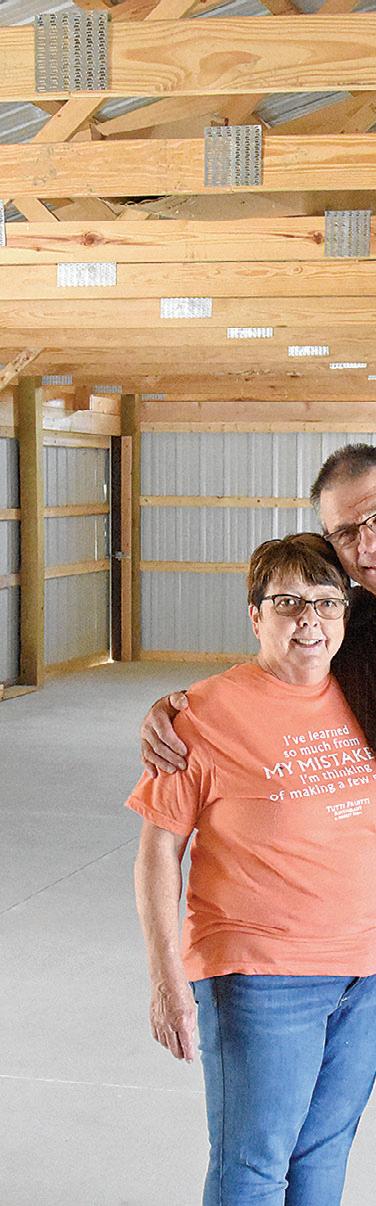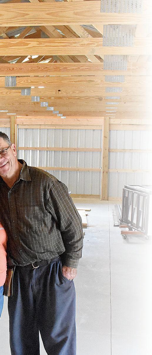 (Above) The Tutti Fruitti Restaurant and Market Farm expansion has its sides closed Aug. 17 near Sauk Centre. The expansion will store machinery during the winter. (Left) Marlene and Kevin Gwost show off the interior of their new dance barn expansion Aug. 17 at Tutti Fruitti Restaurant and Market Farm near Sauk Centre. The expansion replaces the event tent the Gwosts would have to assemble for larger events like Oktoberfest.