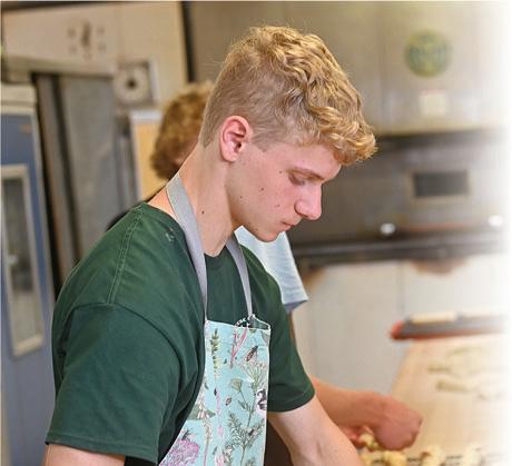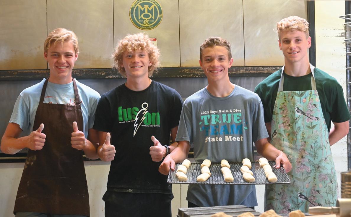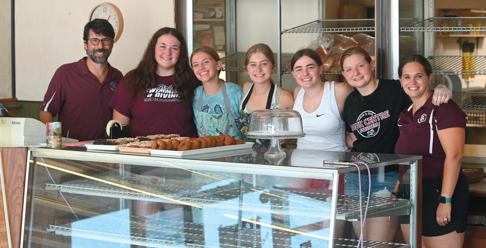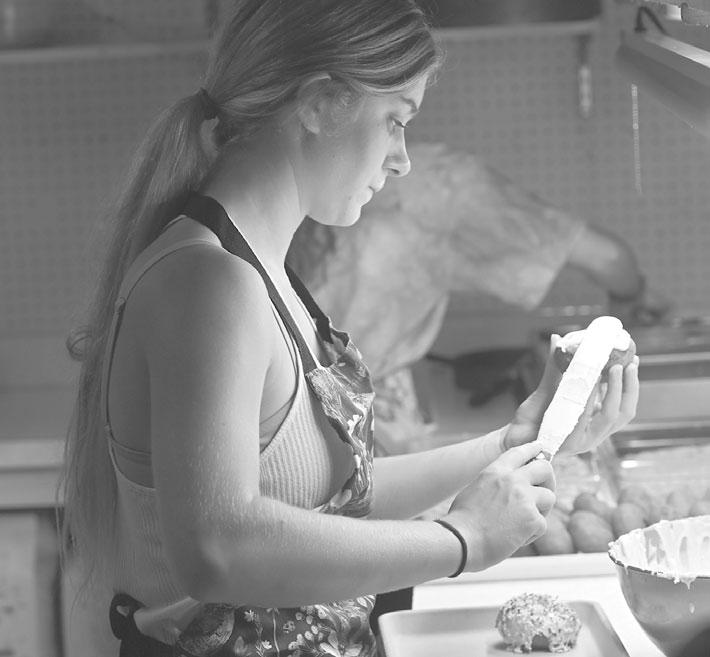 Tori Marthaler spreads frosting over a doughnut Aug. 22 at The Beck Bakery in Sauk Centre. Marthaler and her fellow Sauk Centre girls swim and dive volunteers raised money for the program by selling doughnuts to the public out of the bakery.