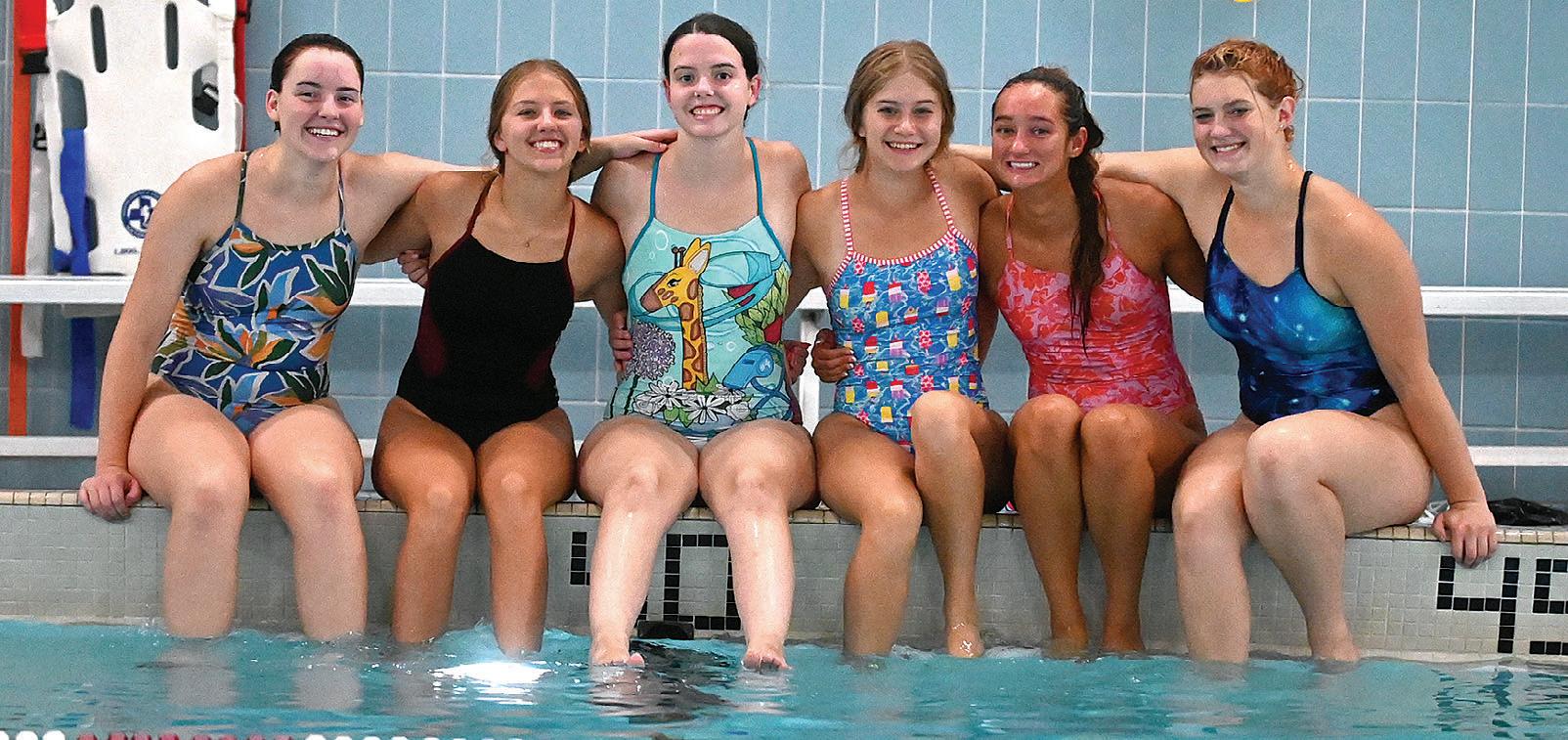 The Sauk Centre girls swim and dive senior class consists of Violet Anderson (from left), Serena Middendorf, Jorja Novak, Tori Marthaler, Stella Schirmers and Carmen Loxtercamp. The Streeters expect contributions from swimmers and divers of various experience levels during the fall season.