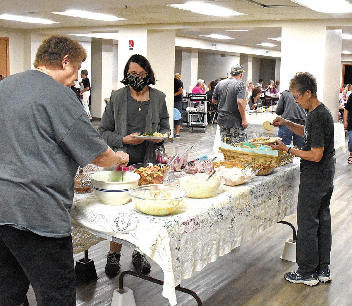 Diners peruse the salads available at the salad luncheon Aug. 16 at First Lutheran Church in Sauk Centre. The Sauk Centre Gradatim Club was founded in October 1895 as a literary society.