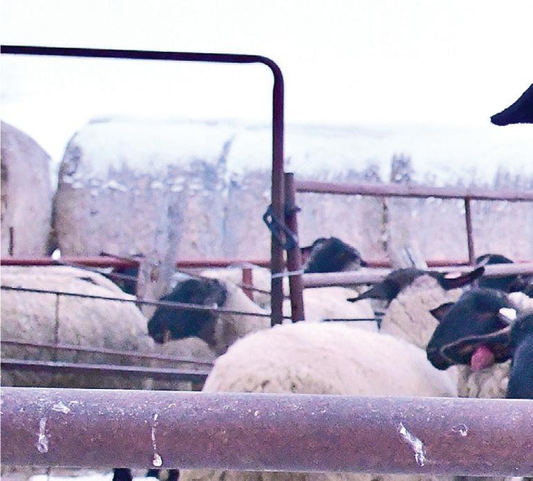 Bret and Lorie Oelke gather with three of their 16 grandchildren – Maverick Hawthorne, Scarlet Bergstrom-McKee (center) and Daphne BergstromOelke – March 8 at their sheep farm near Barrett. All of the Oelkes’ grandchildren who are old enough show sheep in competitions.