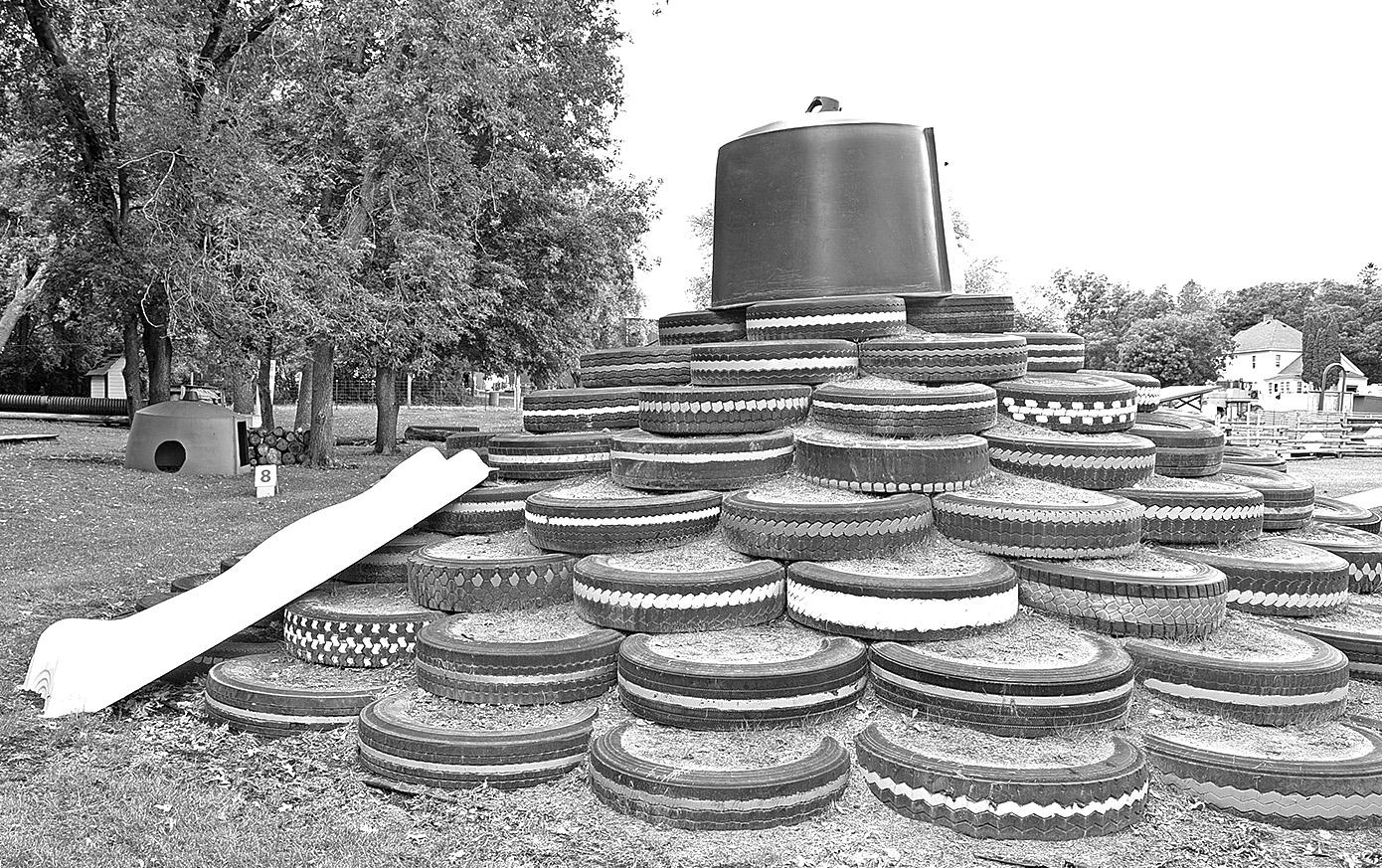 A mountain of tires awaits children Sept. 25 at Nelson Farm near Litchfield. The tower is complete with a slide.