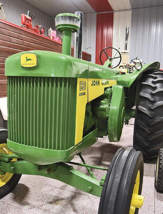 A John Deere 830 is parked April 5 in the Hales’ shed in Pine Island. Brian Hale describes buying a John Deere as “almost a sin.”; the tractor is his first John Deere.