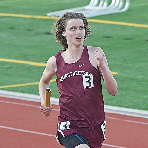 Zander Olmschenk runs the final leg of the 4x400 relay at the Class A Minnesota State High School League State Track and Field Championships June 8 at St. Michael-Albertville High School in St. Michael. Olmschenk filled in for Brandon Kampsen nicely, helping the team to a 3:36.02 finish.
