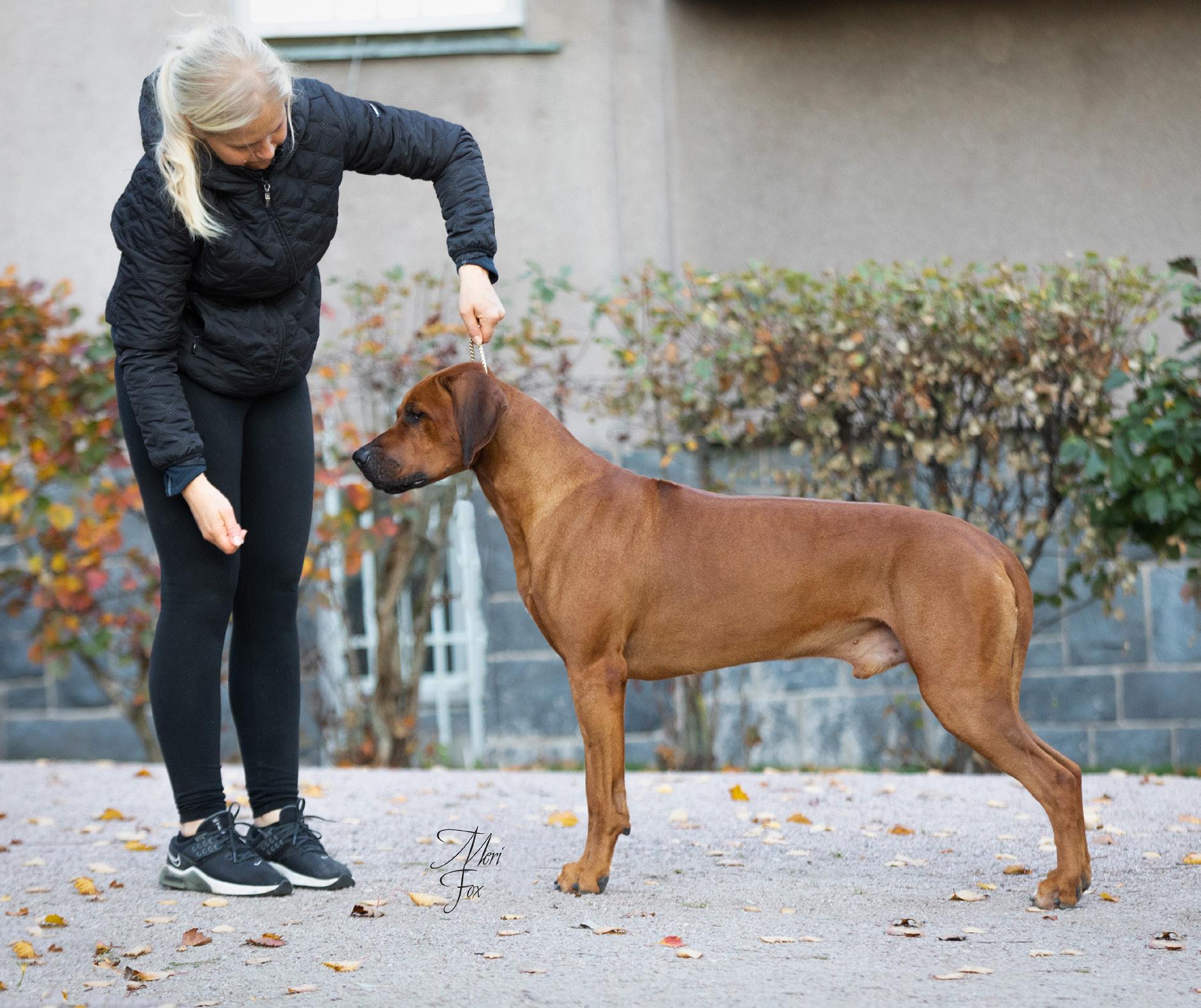 Ayo is our first Ridgeback. He came to us when we moved into our newly built home. We have always lived with dogs. German Shepherd Dogs, Cocker Spaniel, Beagle in our parents’ homes. Of course, we wanted one in our own home, so we looked for a family dog, big and with short hair, which is also able to protect family, house and garden. After careful consideration, we decided on a Rhodesian Ridgeback. The next step was to find a breeder not too far from us, so we came to Katja Lisson. Best decision, as we know now. Ayo was chosen for us by her, because our daughter Leonie was a small child and a bit afraid of this huge dog, so we got the gentlest dog from the litter. This also was best decision. After few weeks Katja asked who wants to try to show their dogs. We tried, first time at CACIB Kassel and we won, we tried again and we won, we tried again and we didn´t win. Then we asked why we did not win and we started to train more. That was the beginning of the success. Time went by and we felt that Ayo needs a 4legged friend. This decision was also not an easy one. We looked for another show dog and of course another family member. And so, we found Samu. Same breeder, same line of course. Another adventure started because he is a completely different in character. Now after 2 years we see that this was also the best decision. He is the best buddy for us all and we love his special temperament. We are so so happy with these 2 dogs.