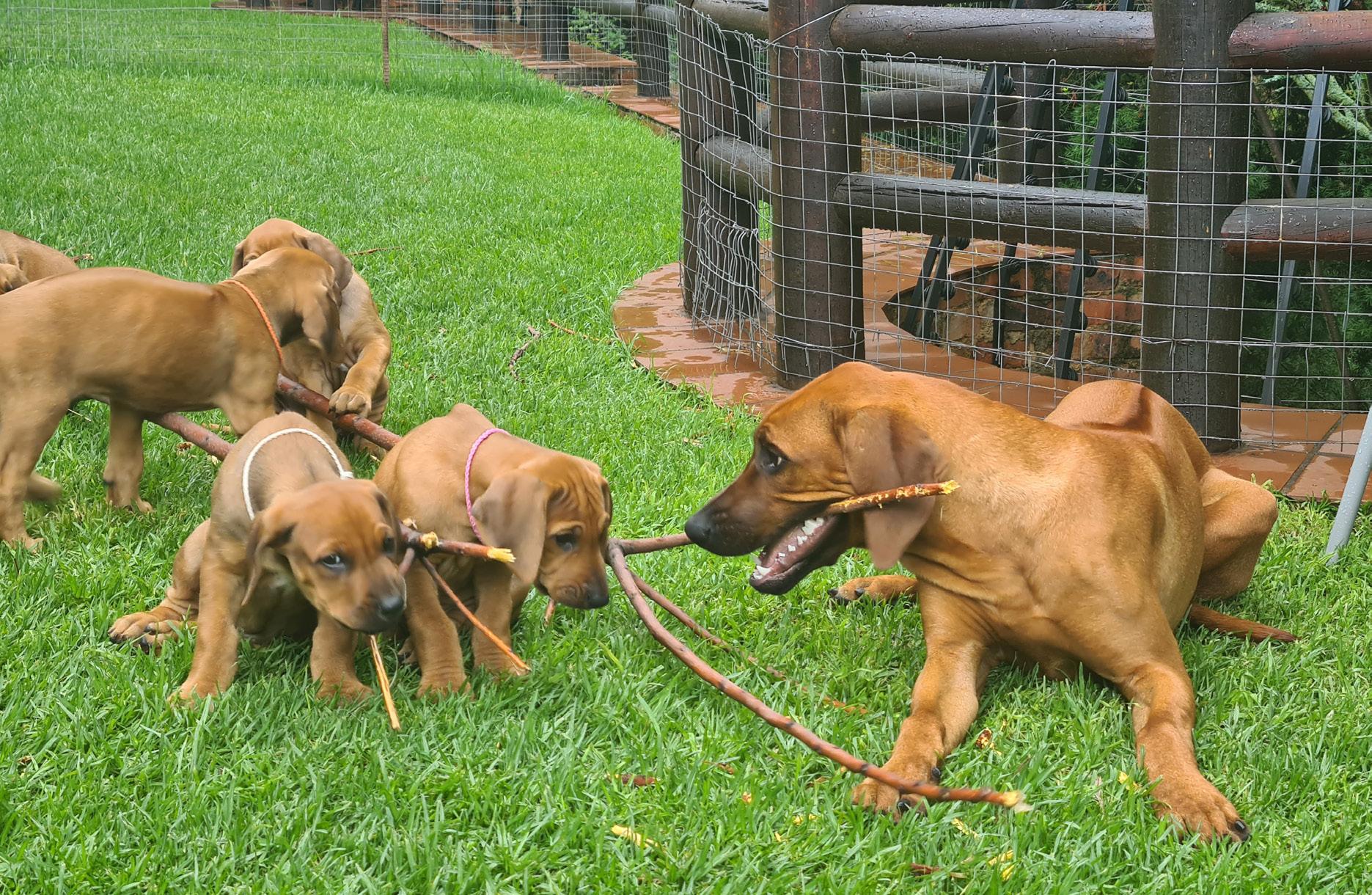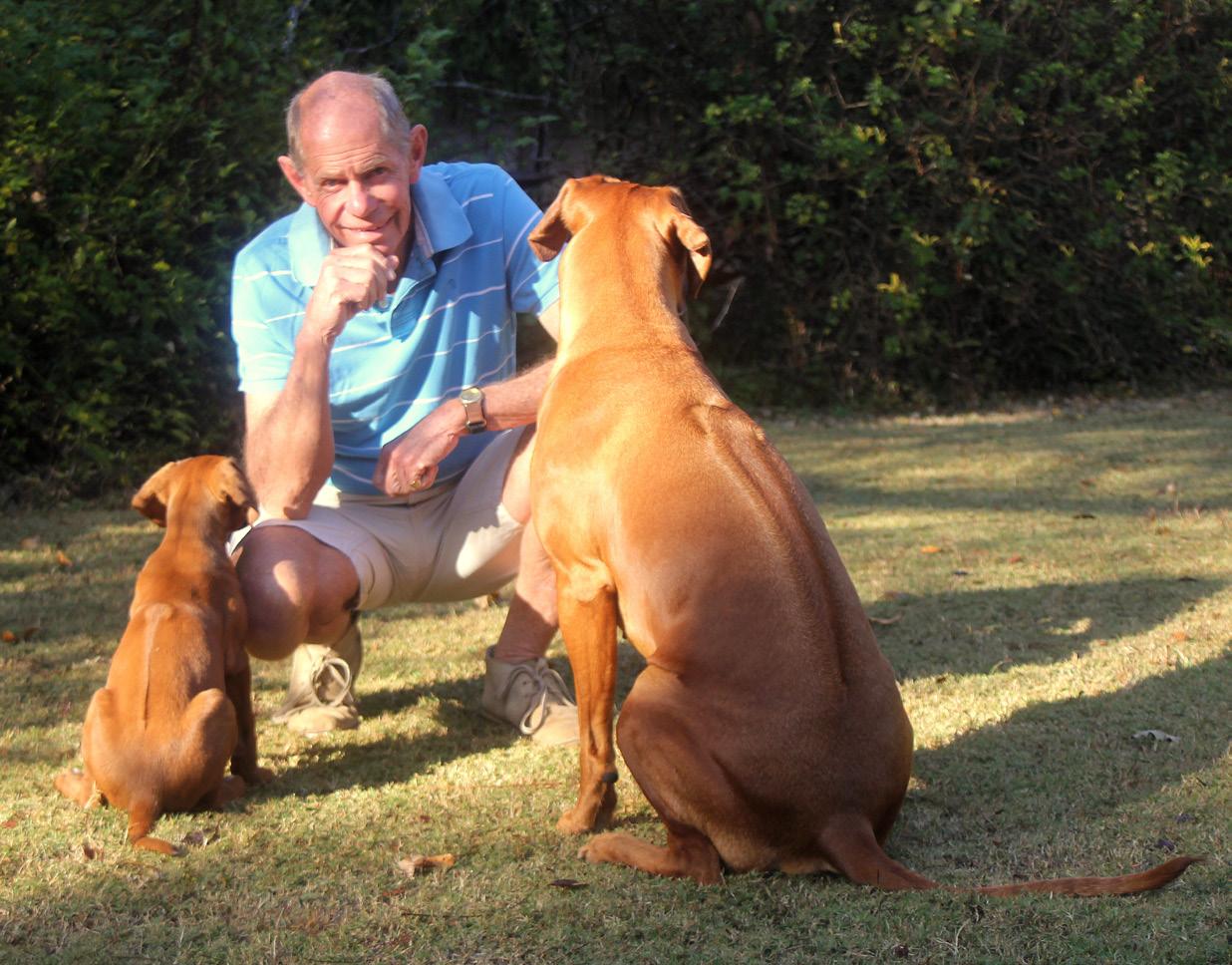 When the first Europeans came to Southern Africa they found the local Hottentot peoples had, as their faithful and trusted companions, a smallish, somewhat ugly dog with a very distinctive ridge on its back where the hairs grew backwards. The dog was nothing more than a curiosity and these same Europeans brought their European breeds with them, using them for companionship and hunting. Many of these breeds - Pointers, Whippets, Terriers amongst others, struggled in Africa with its different diseases and high concentration of predators including lion. In the early 1900’s Cornelius van Rooyen, who lived in the south western corner of Rhodesia, began using these ridged dogs to hunt with, especially lion. Soon after this the Reverend Charles Helm, a missionary, brought two greyhound type dogs from South Africa and