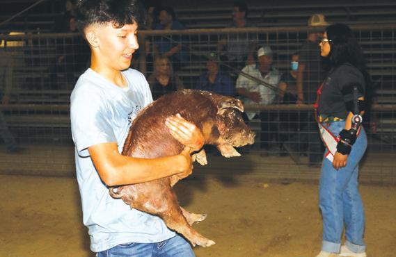 MARKET HOG DIVISION: Grand Champion, Juan Rocha, Jr., Vaquero 4-H; Reserve Champion, Arturo Pena III, Vaquero 4-H; SHOWMANSHIP – Senior Division: Grand, Arturo Moreno, Lucky Star 4-H ($200 annual award in memory of Noe Falcon by Falcon Family); Reserve, Jaime Castillo, Vaquero 4-H; Intermediate Division: Grand, Sabriel Lopez, Vaquero 4-H; Reserve, Nicolas Geronimo Guerra, RGC FFA; Junior Division: Grand, Lexani Gonzalez, Roma FFA; Reserve, Olivia Aurora Guerra, RGC FFA.