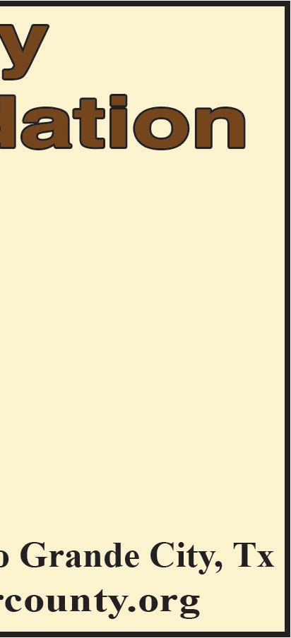 Jr. Memorial Scholarship $2,500 – Juan A. Rocha, Jr., IDEA; $2,000 –Omar Seguin Mendoza, IDEA; $1,500 – Lia Kathleen Gutierrez, RGCHS; $1000 recipients – Naitssa Ramirez, RGCHS; Arturo Alvirde III, GHS; Lino August Hinojosa, RGCHS; J’Elle Longoria, SIHS; Jaylen Jane Gonzalez, RGCHS; Victoria Lee Salinas, RGCHS; Kamryn Elizabeth Pena, RGCHS; Cassandra Vargas, IDEA; Arturo Pena III, PECHS; Jesse James Ramon, Roma HS; Chloe Anastasia Perez, RGCHS.
