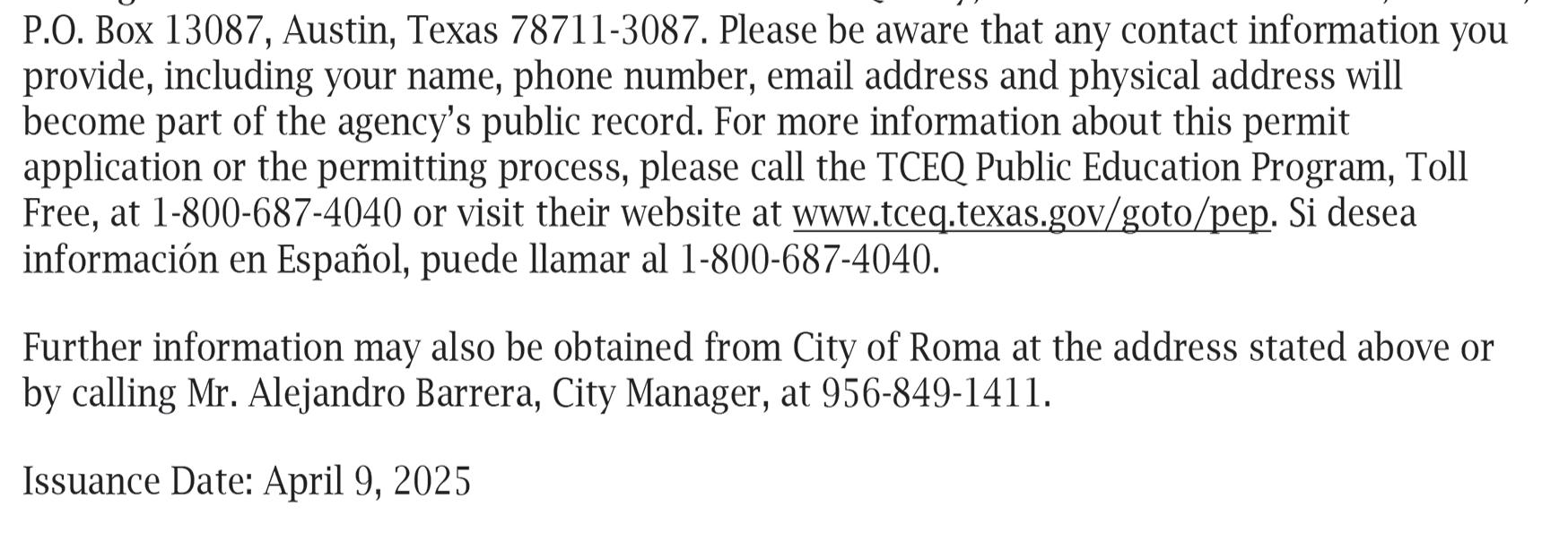 The RGRWPG will be accepting written and oral comments on the IPP at this public hearing. They will acknowledge these comments and report to the TWDB how these comments will be incorporated into the �inal plan to be submitted to the TWDB by October 20, 2025. For questions or additional information regarding the public hearing, please contact Mrs. Melisa-Gonzales Rosas at (956)682-3481 ext.163 or melisa.gonzales@lrgvdc.org, or at the physical address listed above.
