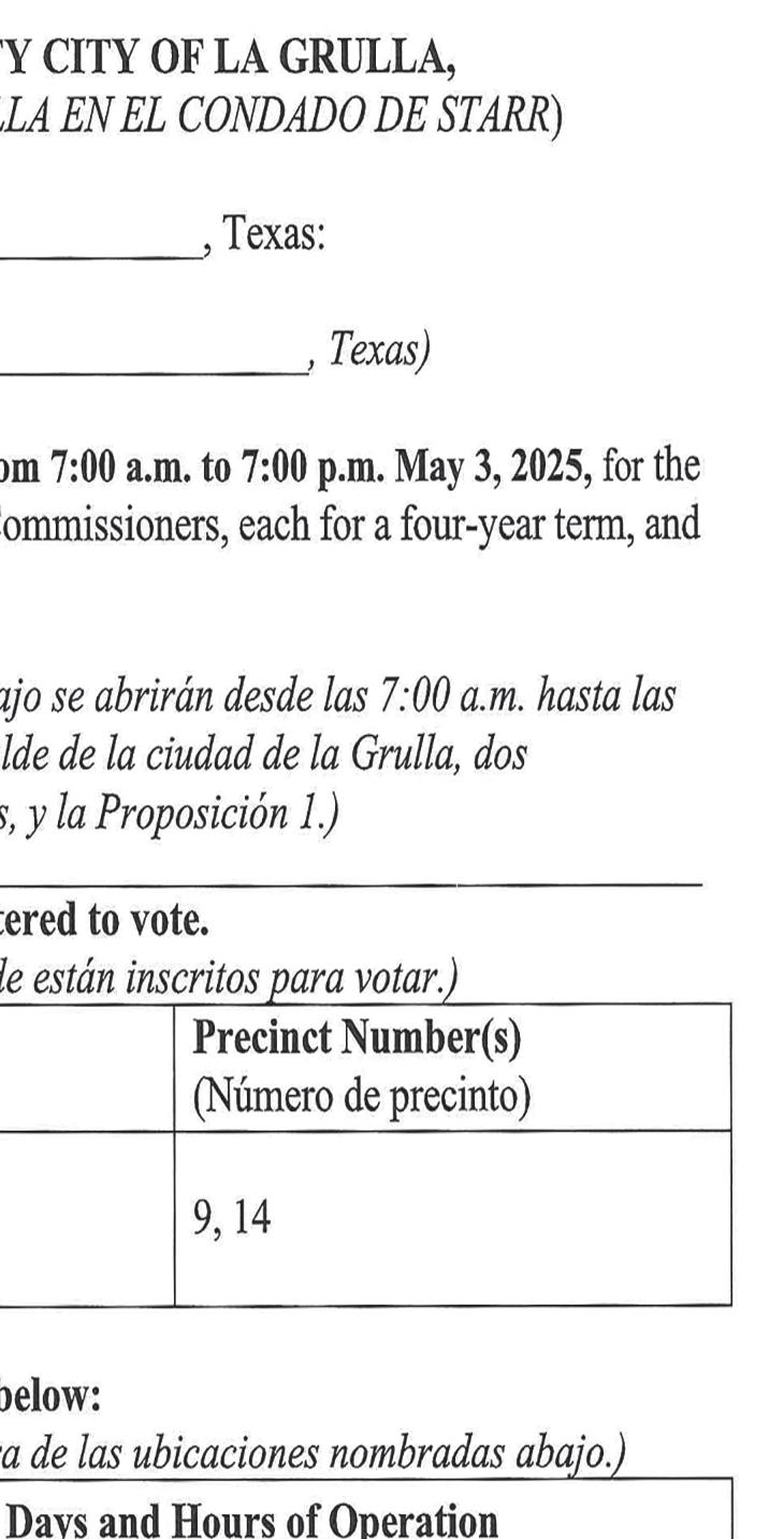 The City of Rio Grande City Public Utilities Department is soliciting sealed bids for the “North Lopez Sanitary Sewer Collections Project”. Bids will be read aloud at 11:00 A.M. on Friday, May 2, 2025 at the City of Rio Grande City – City Hall Chambers located at 5332 E. U.S. Highway 83 – Suite A., Rio Grande City, Texas 78582.