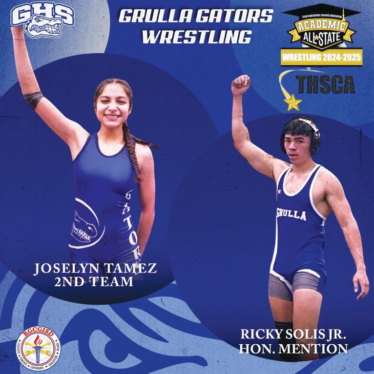 Congratulations to Grulla Gators Joselyn Tamez (2nd Team) and Ricky Solis Jr. (Honorable Mention) for earning a spot in the prestigious THSCA Academic All-State Team for Wrestling. The RGCGISD community is extremely proud of your academic and athletic achievements.