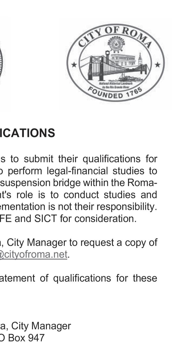 487-2440 300 East Main St. R.G.C. STARR VISION CENTER Dr. Angie Ramirez erapeutic Optometrist 488-0808 280 W. 2nd St. R.G.C. CASTAÑEDA Auto Insurance & Bail Bonds 487-7000 487-2596 4350 E. US HWY 83 R.G.C. • Individual • Partnership • Corporations • LLC’s • Bookkeeping • Payroll • Financial Statements • Form 2290 • IRS Audit Representation Mario A. Méndez, EA Licensed to practice before the IRS (Internal Revenue Service) 317-1124 (956) 201 S. San Antonio. St. Rio Grande City, TX (NEW LOCATION) Vol. 38, No. 33 WEEKLY WEDNESDAY • AUGUST 16, 2023 Office (956) 487-6544 - Fax (956) 487-6165 - E-Mail: sctc78582@aol.com - www.starrcountytowncrier.com The Law Office Of 956-317-1167 206 N. Britton Ave. Ste.B, R.G.C. jmchemagarza@gmail.com J.M. “Chema” Garza Criminal Cases (Federal/State) Car Accidents/ 18 Wheeler Divorces • Real Estate/Deeds Dr. Raymond Cruz Best FAMILY & COSMETIC DENTISTRY Dental Insurance, Medicaid and Chip Accepted 419 East 2nd St. Rio Grande City, Tx. 487-2999 311 E Main St Rio Grande City TX 78582-4448 Phone (956) 487-3925 Installment Loans J.M. “Chuy” Alvarez CHUY Alvarez 501 N. Britton Ave • Rio Grande City, Texas 956-487-4871 Cell: 956-208-0282 NOT CERTIFIED BY THE TEXAS BOARD OF LEGAL SPECIALIZATION ATTORNEY AT LAW