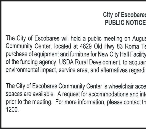 ¿Necesitas ayuda de PROVIDER en tu casa, o conoces a alguien que necesita PROVIDER? HABLEME: OMAR REYES (956) 533-9001 CONSULTA GRATIS Pero, tienen miedo a pedir por temor de perder su propiedad. Sabias que existen cosas a su favor para que eso no suceda. AUGUST 2, 2023 PAGE 12 Your local source for Medicare. Yesenia Lopez Licensed Sales Agent 956-370-0070 TT Y 711 Arroyo:5065 Hwy. 83 ste. A - 956-570-0702 RGC: 4370 E. Hwy 83 Ste. B - 956-309-3549 NOW OPEN NOW OPEN Roma: 834 E. Grant St. Ste. C - 956-570-0701 Escobares: 4522 East Hwy 83 Ste A. 956-429-5625 Penitas - 1715 Expressway 83 Suite A-2 Penitas Tx- 956-424-0133 103 W. 2nd Street Rio Grande City, Tx 78582 956-488-0160 You’re in good hands. Auto • Home • Business • Life Hablamos Español SPACE AVAILABLE PLEASE CALL 956-487-6544
