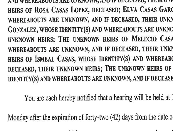 Pursuant to the provisions contained in ARTICLE V, Section Five (5) of the Texas Abandoned Motor Vehicle Act, we are serving notice to the owners and/or lien holders that the below described motor vehicle, has been taken into custody by H&L Wrecker Service, and will be sold. Failure of an owner or lien holder to claim vehicles within thirty (30) days after date of this notice and make payment of all towing, preservation, and storage charges resulting from the placing of vehicles in custody shall constitute a waiver of the right to reclaim vehicle. Contact Humberto Lucio at 956-487-3384, 5879 E. Hwy. 83, Rio Grande City, TX 78582 for information concerning vehicles.