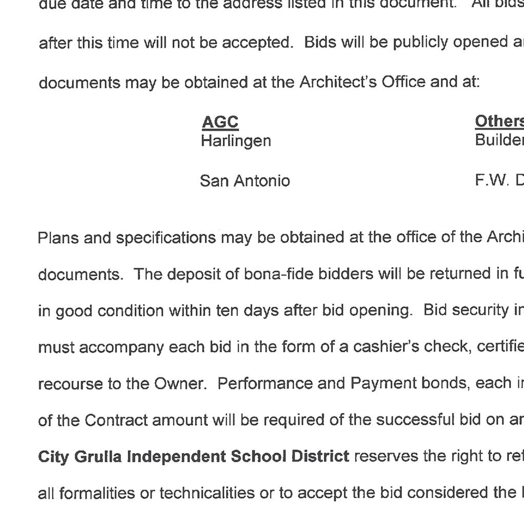 The City of Escobares plans to apply for the upcoming 2023-2024 Community Development Block Grant from the Texas Community Development Block Grant (TxCDBG) Program of the Texas Department of Agriculture (TDA). Accordingly, the City of Escobares is seeking to contract with a qualified Engineering/Architectural/ Surveying Firm(s) (individual/firm) to prepare all preliminary and final design plans and specifications, and to conduct all necessary interim and final inspections. These services are being solicited to assist the City of Escobares in its application preparation and project implementation of a TxCDBG contract, if awarded, to support eligible activities in the City of Escobares. Please electronically submit your SOQS in .pdf format via email at ialanis@cityofescobares.net SOQS must be received by the City of Escobares no later than 3:00 pm on January 3, 2023. The City of Escobares reserves the right to negotiate with any and all individuals or firms that submit SOQs, as per the Texas Professional Services Procurement Act and the Uniform Grant and Contract Management Standards. Section 3 Residents and Business Concerns, Minority Business Enterprises, Small Business Enterprises and Women Business Enterprises are encouraged to submit SOQs. The City of Escobares is an Affirmative Action/Equal Opportunity Employer. Servicios de traducción están disponibles por peticion. Nê’u cần thông di.ch liên lạ.c chính phủ thành phố.