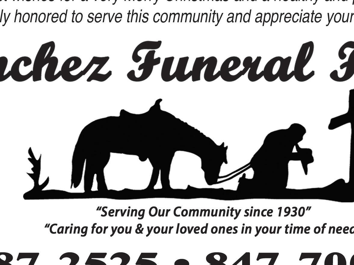 Sanchez (956) 487-2525 Funeral Home 301 E. 2nd. St. Rio Grande City, Tx. 78582 (956) 847-7008 Memorial Funeral Home 101 AR Sanchez Sr. Dr. Roma, Tx. 78584 “Serving Our Community For Over 86 Years” “Caring for you & your loved ones in your time of need ” $2,900.00 FULL FUNERAL SERVICE CALL JEFF OR SONATA SANCHEZ WITH SILVER METAL CASKET Sanchez