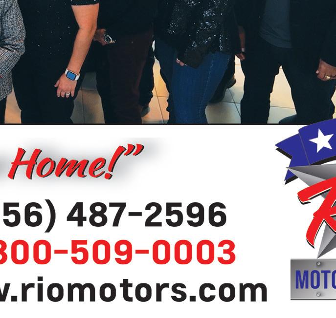STARR COUNTY TOWN CRIER, DECEMBER 21, 2022, PAGE 4 (956) 487-2596 1-800-509-0003 www.riomotors.com “No Matter Where You Live, Come Home!” “No Matter Where You Live, Come Home!” People across the Valley come home to Rio Motor Company! MSRP $50,240 PRICE REDUCTION BELOW MSRP -$ 2,500 SPECIAL VALUE PRICE $47,740 CUSTOMER CASH 1 -$ 1,000 CHEVY RED TAG BONUS CASH 2 -$ 500 SELECT MARKET BONUS CASH 3 -$ 1,000 SALE PRICE $45,240 L (1) Not available with special financing, lease and some other offers. Must take new retail delivery by 1/03/2023. (2) Available toward the purchase or lease of all 2022/2023 Silverado 1500 and Silverado HD pickups, 2022/2023 Blazer, Equinox, Traverse and Malibu models, and 2022 Colorado pickups. Not available with some other offers. Must take new retail delivery by 1/03/2023. (3) Not available with lease and some other offers. Residential restrictions apply. Must take new retail delivery by 1/03/2023. All prices plus tax, title and license. See dealer for details. Vehicle is subject to pre-sale. 2022 CHEVROLET SILVERADO CREW CAB LT $45,240 STK# 24406 ON SE L E C T P OP UL A R 2 0 2 2 /2 0 2 3 C HE V Y MODE L S FIND YOUR TAG. FIND YOUR DEAL. Roma ISD’s Library Services Team brought plenty of smiles and joy to the community at their Magic of Reading drive through book giveaway! Children of all ages received two free books, hot chocolate, and saw Santa and story characters. More than 600 children were served through the event. Roma ISD Celebrates Christmas Season with Magic of Reading Event