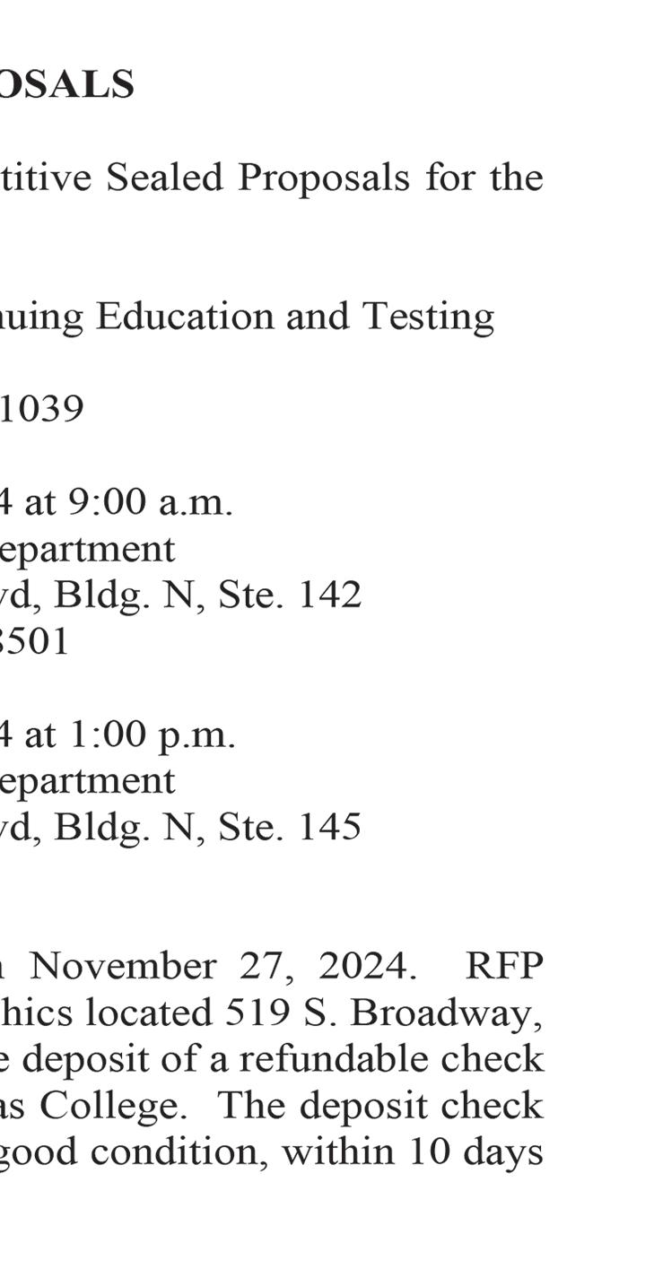South Texas College is accepting competitive proposals for the following: RFP Number Description Date Due Time 24-25-1040 Electric Sport Utility December 17, 2024 3:00 PM Vehicle