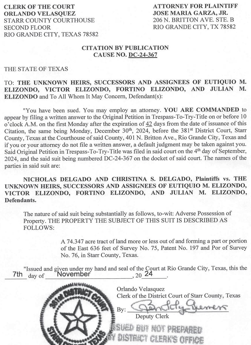 district in Texas, in addition to all other requirements set out under the Texas Property Tax Code. The location of our office will remain the same at 100 N. FM 3167, Ste 300, Rio Grande City, Texas, and any questions regarding this press release can be made to Sonia R. Garza, Chief Appraiser at Starr County Appraisal District at (956)4875613.