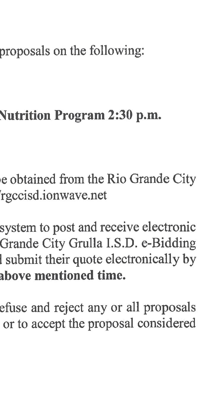 Sealed Bids will be accepted by the Starr County Federal & State Programs Staff at Starr County Annex suite 220 at 100 N FM 3167 Rio Grande City, TX. Until 3:00 p.m. Thursday, February 27, 2025. Bids not received prior to the date and time set forth above will not be accepted for consideration. Starr County will consider the lowest responsible Bid.