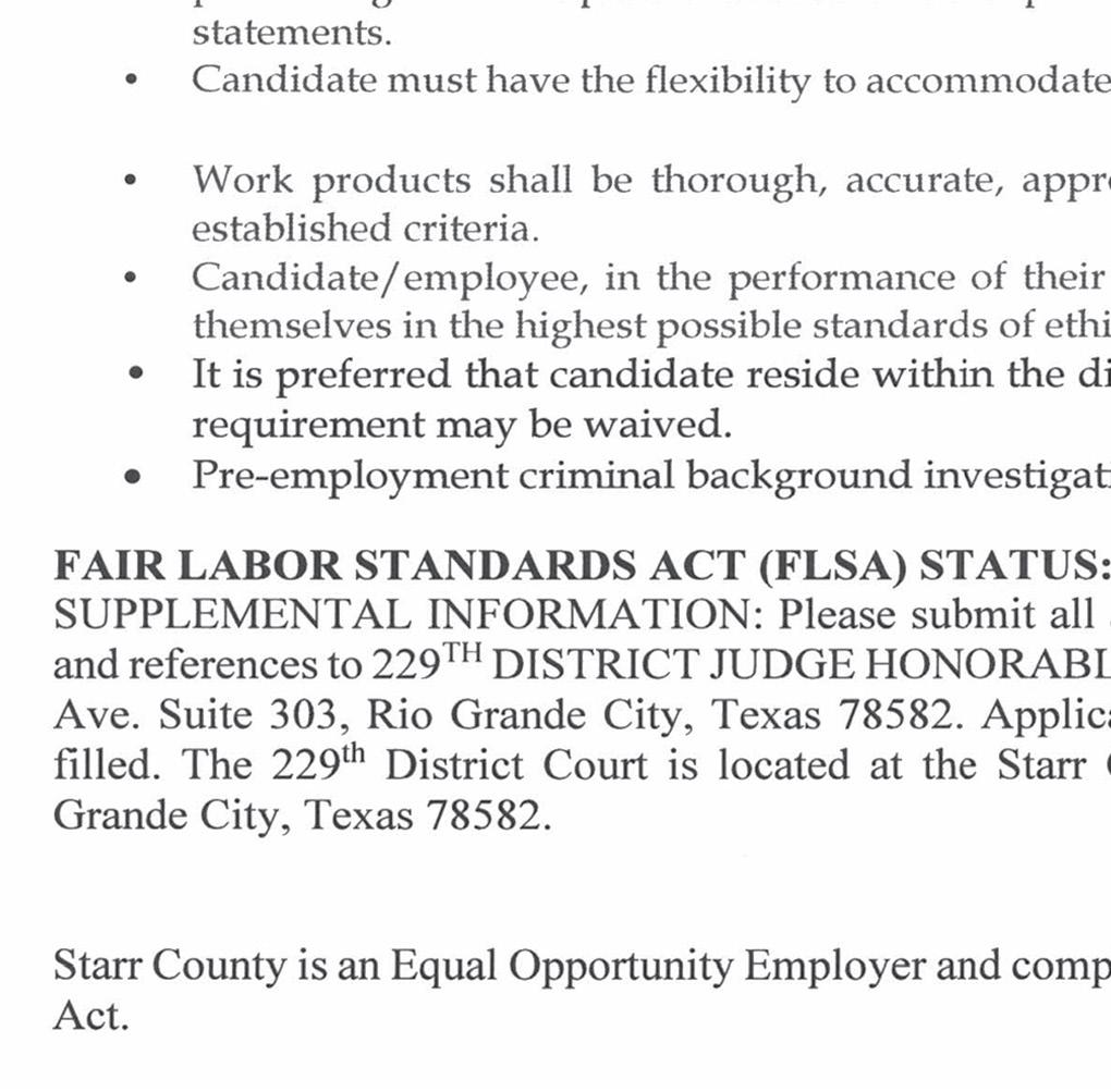 The County of Starr is an Affirmative Action/Equal Opportunity Employer.