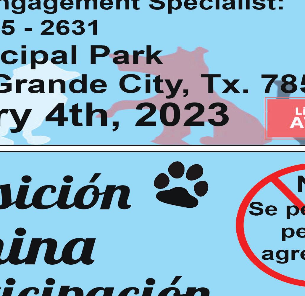 ¿Necesitas ayuda de PROVIDER en tu casa, o conoces a alguien que necesita PROVIDER? HABLEME: OMAR REYES (956) 533-9001 CONSULTA GRATIS Pero, tienen miedo a pedir por temor de perder su propiedad. Sabia que existen cosas a su favor para que eso no suceda. Cristina Vargas (956) 500-0101 Yaritza Gomez (956) 422-1980 FEBRUARY 1, 2023 PAGE 10 Your local source for Medicare. Yesenia Lopez Licensed Sales Agent 956-370-0070 TT Y 711 Arroyo:5065 Hwy. 83 ste. A - 956-570-0702 RGC: 4370 E. Hwy 83 Ste. B - 956-309-3549 NOW OPEN NOW OPEN Roma: 834 E. Grant St. Ste. C - 956-570-0701 Escobares: 4522 East Hwy 83 Ste A. 956-429-5625 Penitas - 1715 Expressway 83 Suite A-2 Penitas Tx- 956-424-0133 103 W. 2nd Street Rio Grande City, Tx 78582 956-488-0160 You’re in good hands. Auto • Home • Business • Life Hablamos Español