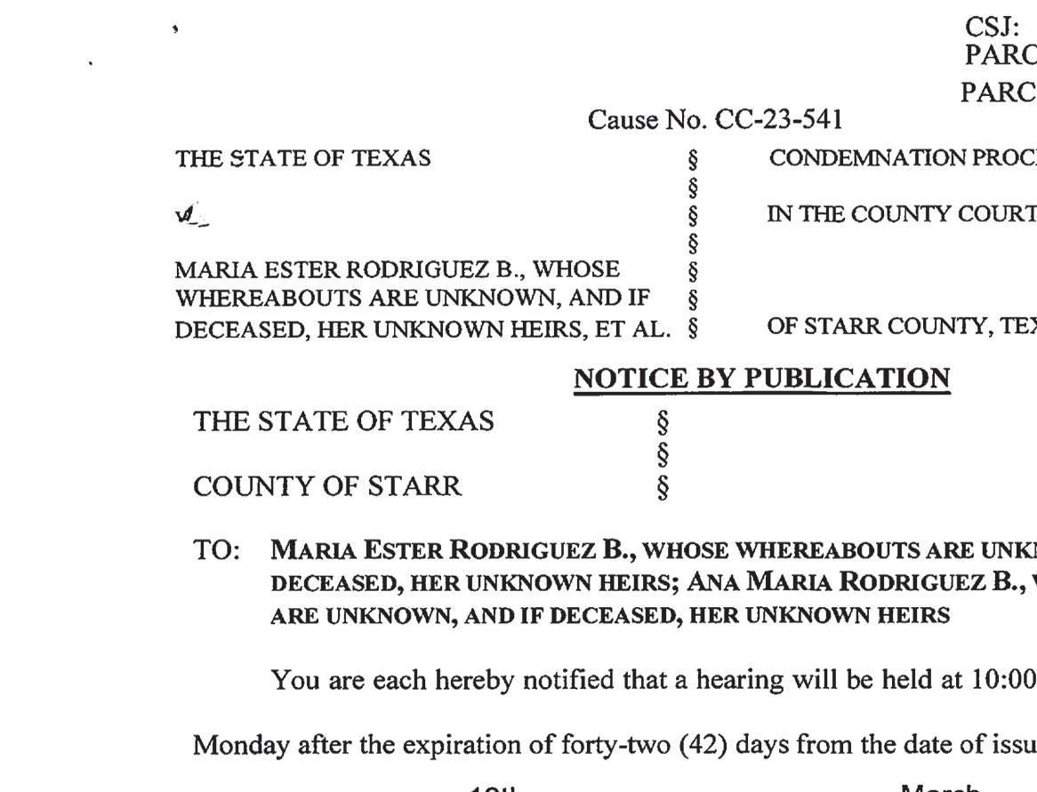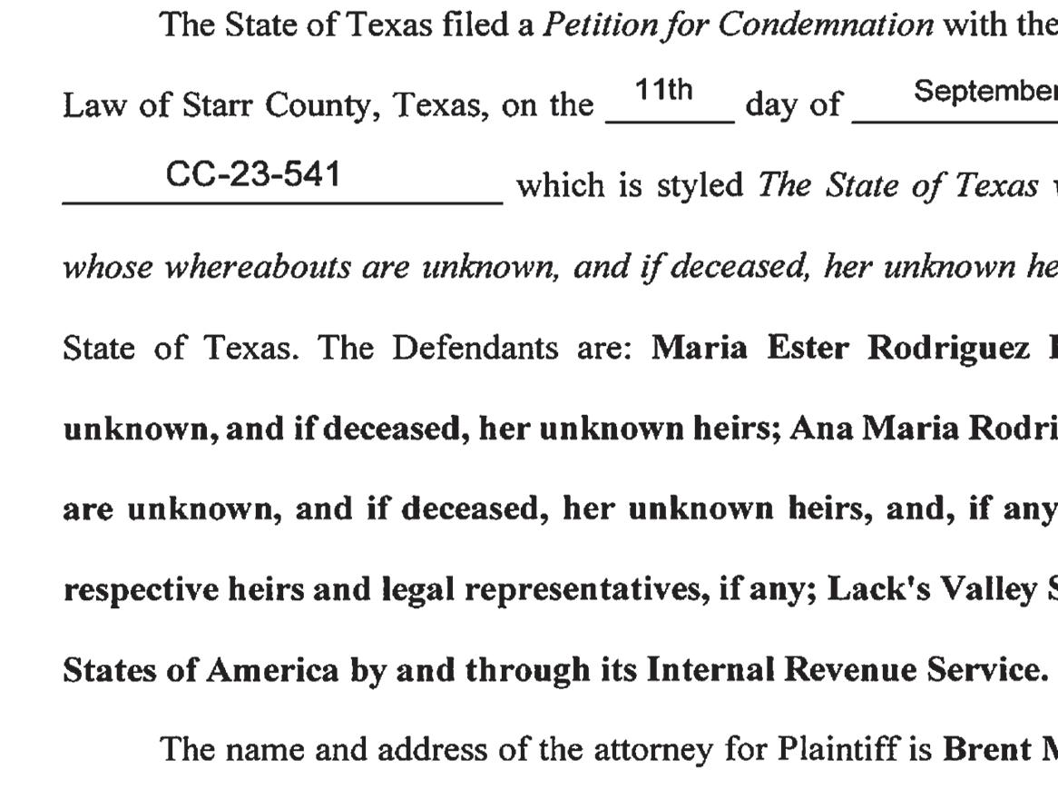 North F.M. 3167, Rio Grande City Texas 78582. Property will be sold to the highest bidder for cash only. Cleanup and removal deposit may be required. Seller reserves right to not accept any bid and to withdraw property from sale.