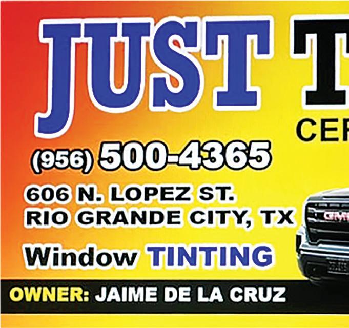 487-2440 300 East Main St. R.G.C. STARR VISION CENTER Dr. Angie Ramirez erapeutic Optometrist 488-0808 280 W. 2nd St. R.G.C. CASTAÑEDA Auto Insurance & Bail Bonds 487-7000 487-2596 4350 E. US HWY 83 R.G.C. • Individual • Partnership • Corporations • LLC’s • Bookkeeping • Payroll • Financial Statements • Form 2290 • IRS Audit Representation Mario A. Méndez, EA Licensed to practice before the IRS (Internal Revenue Service) 317-1124 (956) 201 S. San Antonio. St. Rio Grande City, TX (NEW LOCATION) Vol. 39, No. 9 WEEKLY WEDNESDAY • FEBRUARY 28, 2024 Office (956) 487-6544 - Fax (956) 487-6165 - E-Mail: sctc78582@aol.com - www.starrcountytowncrier.com The Law Office Of 956-317-1167 206 N. Britton Ave. Ste.B, R.G.C. jmchemagarza@gmail.com J.M. “Chema” Garza Criminal Cases (Federal/State) Car Accidents/ 18 Wheeler Divorces • Real Estate/Deeds Dr. Raymond Cruz Best FAMILY & COSMETIC DENTISTRY Dental Insurance, Medicaid and Chip Accepted 419 East 2nd St. Rio Grande City, Tx. 487-2999 311 E Main St Rio Grande City TX 78582-4448 Phone (956) 487-3925 Installment Loans J.M. “Chuy” Alvarez CHUY Alvarez 501 N. Britton Ave • Rio Grande City, Texas 956-487-4871 Cell: 956-208-0282 NOT CERTIFIED BY THE TEXAS BOARD OF LEGAL SPECIALIZATION ATTORNEY AT LAW RGC