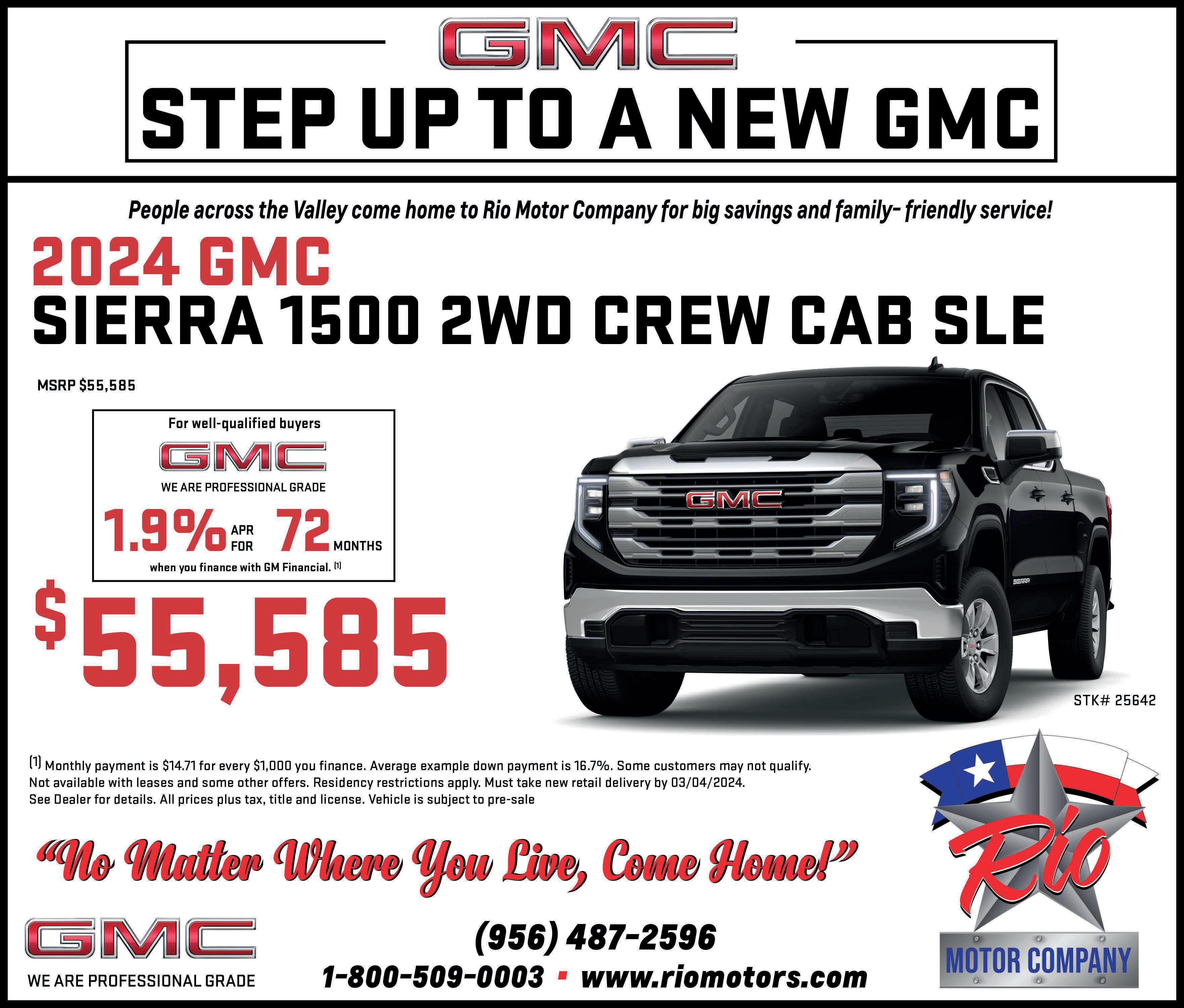 STARR COUNTY TOWN CRIER, FEBRUARY 28, 2024, PAGE 2 Ciara Barrera 6th place at 165 lbs. Lia and Lily will both be leaving us for their future endeavors. We wish all of our seniors who are departing the best in the future and hope that they learned some things about life along the way. There are many others who probably should be mentioned but we choose to focus on those who had the most recent successes. Congratulations to those wrestlers and their families for the honor of competing at the highest level offered in Texas UIL Wrestling. 2024 CHEVROLET 1500 CREW CAB CUSTOM 2WD $48,265 (956) 487-2596 • 1-800-509-0003 www.riomotors.com “No Matter Where You Live, Come Home!” “No Matter Where You Live, Come Home!” People across the Valley come home to Rio Motor Company! (1) Monthly payment is $14.71 for every $1,000 you finance. Average example down payment is 16.7%. Some customers may not qualify. Not available with leases and some other offers. Residency restrictions apply. Must take new retail delivery by 03/04/2024. See Dealer for details. All prices plus tax, title and license. Vehicle is subject to pre-sale. MSRP $48,265 1.9% APR FOR 72 MONTHS when you finance with GM Financial. (1) For well-qualified buyers Sanchez (956) 487-2525 Funeral Home 301 E. 2nd. St. Rio Grande City, Tx. 78582 (956) 847-7008 Memorial Funeral Home 101 AR Sanchez Sr. Dr. Roma, Tx. 78584 “Serving Our Community For Over 86 Years” “Caring for you & your loved ones in your time of need ” $2,900.00 FULL FUNERAL SERVICE CALL JEFF OR SONATA SANCHEZ WITH SILVER METAL CASKET Sanchez Pida a los 3 Ángeles San Miguel,