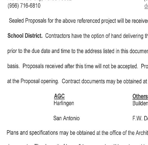 Questions regarding this RFP or requests for additional information should be addressed to Becky Cavazos, Director of Purchasing 956-872-4681 beckyc@southtexascollege. edu, or Deyadira Leal, Construction Buyer of Purchasing, 956-872-4686 daleal@ southtexascollege.edu. Responses to the RFP must be submitted to South Texas College, 3200 W. Pecan Blvd, Bldg N, Ste 145, McAllen, TX 78501.