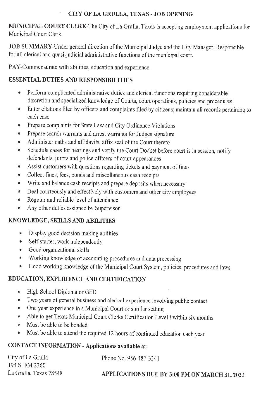 Para mantenimiento (Handyman) preferible con experiencia Para mas información llamar a Joel: 956-844-9303