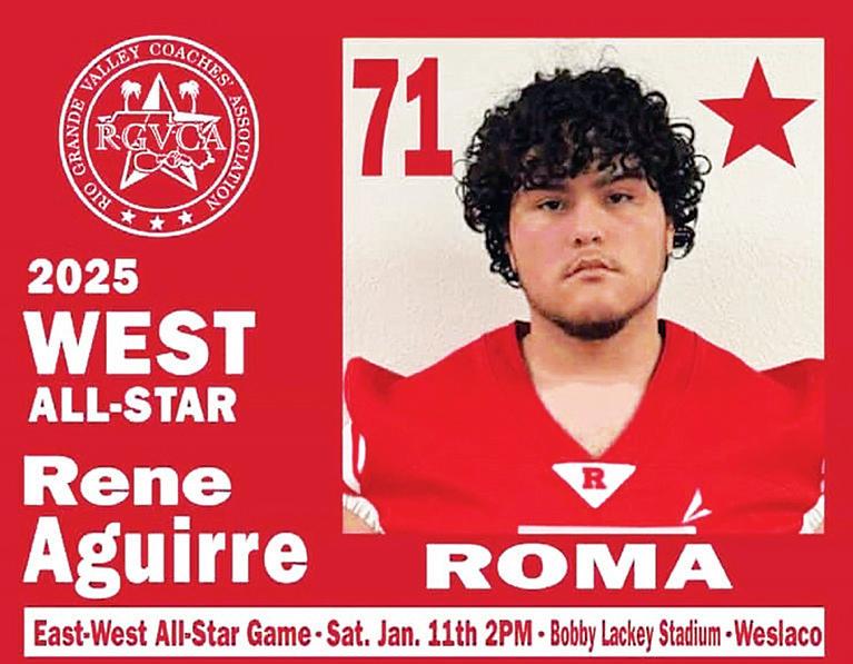 Congratulations to Roma High School Mighty Gladiator Varsity Football Player #71 Rene Aguirre for earning a spot in the RGVCA East Vs. West All-Star Game! The game takes place on January 11, 2025 at