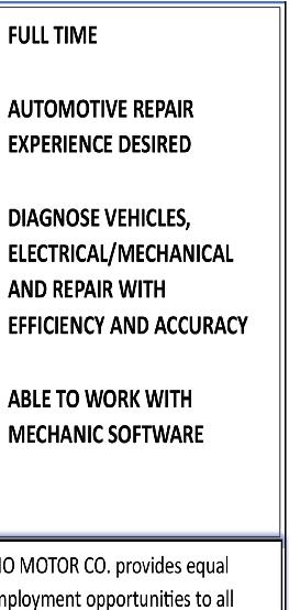 STARR COUNTY TOWN CRIER, JULY 26, 2023, PAGE 12 APARTMENT FOR RENT 1 bedroom, 1 bath w/ laundry, dinning, and living room appliances included. Newly remodeled 1 block away from North Grammar Elementary in RGC. For info. call 956-487-8989 LAB TECHNICIAN NUESTRA CLINICA DEL VALLE, INC. (NCDV) has employment opportunity for a Lab Technician for the Rio Grande City/Roma Clinics. High school graduate or GED. Lab Technician certi cation preferred. Experience in clinical work, including instrument calibration. Phlebotomy skills required. Bilingual (English/Spanish) communication skills. Apply on line at www.nuestraclinicadelvalle. org Mail resume to Nuestra Clinica del Valle, PO Box 1689, Pharr, TX 78577; in person 801 W. First Street, San Juan, TX 78589, or 600 N. Garza, Suite A, Rio Grande City, TX 78582. EOE STK#24902C 2020 Ford Edge People across the Valley come home to Rio Motor Co. for big savings and family-friendly service! No Matter Where You Live, Come Home! www.riomotors.com (956) 487-2596 · 1-800-509-0003 Rolando Flores 956-416-8945 Paco Cantu 956-208-1821 STK# 25003A ONLY 16K MILES!!! NICE! 2019 VW Passat SE STK# 25026A 2022 Chrysler 300 2023 GMC Acadia Denali STK# MANAGER $PECIAL MANAGER $PECIAL STK# 24968A JUST ARRIVED JUSTARRIVED $31,995 $32,995 $49,995 $36,995 $36,995 2020 GMC Terrain Denali $26,995 $32,995$35,995 Medina Electric Cooperative is seeking an Electric Distribution Line Designer for its Rio Grande City O ce. Typical responsibilities include investigating, surveying, and designing electric distribution lines according to construction speci cations. See www.medinaec.org/careers for job description, application, and bene ts. Pay starting at $28. Position is open until lled. Only quali ed applicants will be considered. is institution is an equal opportunity provider and employer. JOB ANNOUNCEMENT Pursuant to the provisions contained in ARTICLE V, Section Five (5) of the Texas Abandoned Motor Vehicle Act, we are serving notice to the owners and/or lien holders that the below described motor vehicle, has been taken into custody by Triple J Wrecker Service, and will be sold. Failure of an owner or lien holder to claim vehicles within forty-five (45) days after date of this notice and make payment of all towing, preservation, and storage charges resulting from the placing of vehicles in custody shall constitute a waiver of the right to reclaim vehicle. Contact Juan J. Lopez, Jr. at 956-735-5144, 6511 E. US Hwy 83, Unit A, Rio Grande City, TX 78582 for information concerning vehicles. PUBLIC NOTICE 2019 POLARIS RANGER XP 1000 2DR VIN# 4XARRM994K8555762