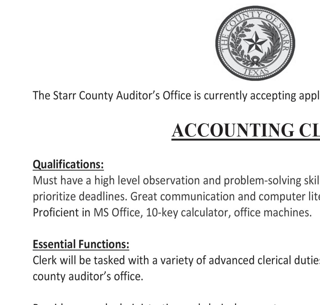 All volume and page references in the legal description refer to the records of the County Clerk of Starr County. All prospective bidders should make their own investigation of the title held by the taxing entities and the value of the property. Prospective bidders are encouraged to consult their attorney. Prospective bidders should not rely on the “Adjudged Value” as representing the actual value of the property or any information regarding the property contained in the records of the Starr County Appraisal District.