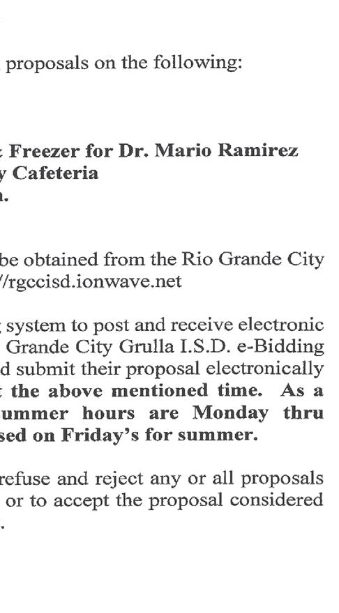 Application has been made with the Texas Alcoholic Beverage Commission for a WINE AND MALT BEVERAGE RETAILER’S PERMIT (BG) AND A LATE HOURS CERTIFICATE (LH) by: ELEAZAR TREVINO , dba ABRIL MUSIC HALL, to be located at 102 CRUZ TREVINO AVE. , ROMA, STARR COUNTY, TEXAS.