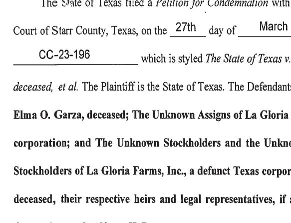 Honorable County Judge, Eloy Vera 100 N. FM 3167, Rio Grande City, Texas 78582.