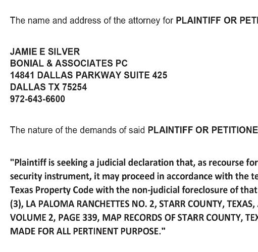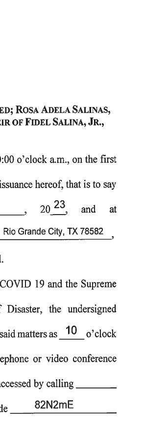 487-2440 300 East Main St. R.G.C. STARR VISION CENTER Dr. Angie Ramirez erapeutic Optometrist 488-0808 280 W. 2nd St. R.G.C. CASTAÑEDA Auto Insurance & Bail Bonds 487-7000 487-2596 4350 E. US HWY 83 R.G.C. • Individual • Partnership • Corporations • LLC’s • Bookkeeping • Payroll • Financial Statements • Form 2290 • IRS Audit Representation Mario A. Méndez, EA Licensed to practice before the IRS (Internal Revenue Service) 317-1124 (956) 201 S. San Antonio. St. Rio Grande City, TX (NEW LOCATION) Vol. 38, No. 25 WEEKLY WEDNESDAY • JUNE 21, 2023 Office (956) 487-6544 - Fax (956) 487-6165 - E-Mail: sctc78582@aol.com - www.starrcountytowncrier.com The Law Office Of 956-317-1167 206 N. Britton Ave. Ste.B, R.G.C. jmchemagarza@gmail.com J.M. “Chema” Garza Criminal Cases (Federal/State) Car Accidents/ 18 Wheeler Divorces • Real Estate/Deeds Dr. Raymond Cruz Best FAMILY & COSMETIC DENTISTRY Dental Insurance, Medicaid and Chip Accepted 419 East 2nd St. Rio Grande City, Tx. 487-2999 311 E Main St Rio Grande City TX 78582-4448 Phone (956) 487-3925 Installment Loans J.M. “Chuy” Alvarez CHUY Alvarez 501 N. Britton Ave • Rio Grande City, Texas 956-487-4871 Cell: 956-208-0282 NOT CERTIFIED BY THE TEXAS BOARD OF LEGAL SPECIALIZATION ATTORNEY AT LAW Thank you parents and coaches for their hard work and dedication and time spent with the kids. Top to left: Coach Jesus Gutierrez, Coach Orlando Barcenas, Coach Jorge Barcenas Sr., Coach Jorge Barcenas Jr., Coach Earl Lockwood, and Coach Jesus Cazares. Space City Cowboys Team - Middle: Michael Alvarez, Gael Gutierrez, Louie Garcia, Easton Lockwood, Damacio Garcia, Andres Montalvo, and Johnathan Camarillo. Bottom: Derek Lee Cazares, Rey Gutierrez, Braydan Solis, and Angela Mijares. Congratulations to the Roma High School Gladiator Television Network Broadcast News Production Team of Bruno Garza, Noel Guerrero and Amy Huerta Chave for advancing to the Business Professionals of America National Competition in Anaheim, California. Roma High School was the only school from the region to advance to Nationals and this marks the 2nd year in GTN’s program history to represent our school on the national stage. The students earned 2nd Place Nationally in the competition! The Gladiator Nation is extremely proud of these highly talented students. Congratulations to the Space City Cowboys Team on their successful 2023 T-Ball Spring Season!!!