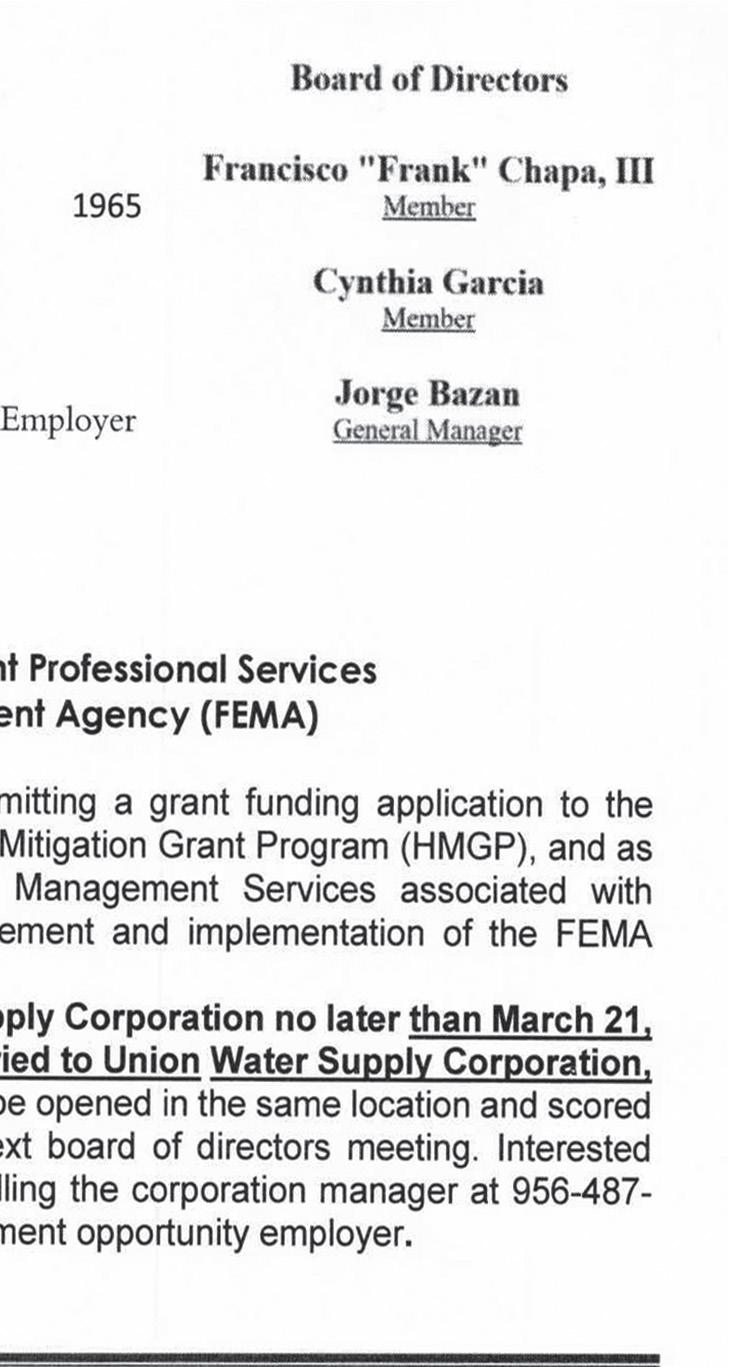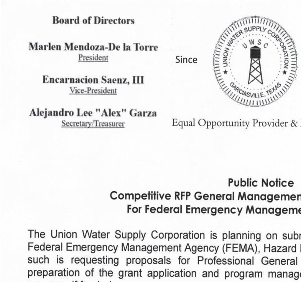 Attn: Alejandro Barrera, Executive Director PO Box 947 Roma, TX 78584