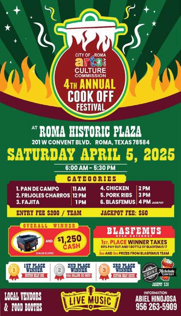 Notice is hereby given that the Planning and Zoning Commission for the City of Roma will hold a Public Hearing on Monday, April 7, 2025, at 5:30 P.M. at the Roma City Council Chambers, located at 201 W. Convent Ave, Roma, Texas to consider the following case(s):