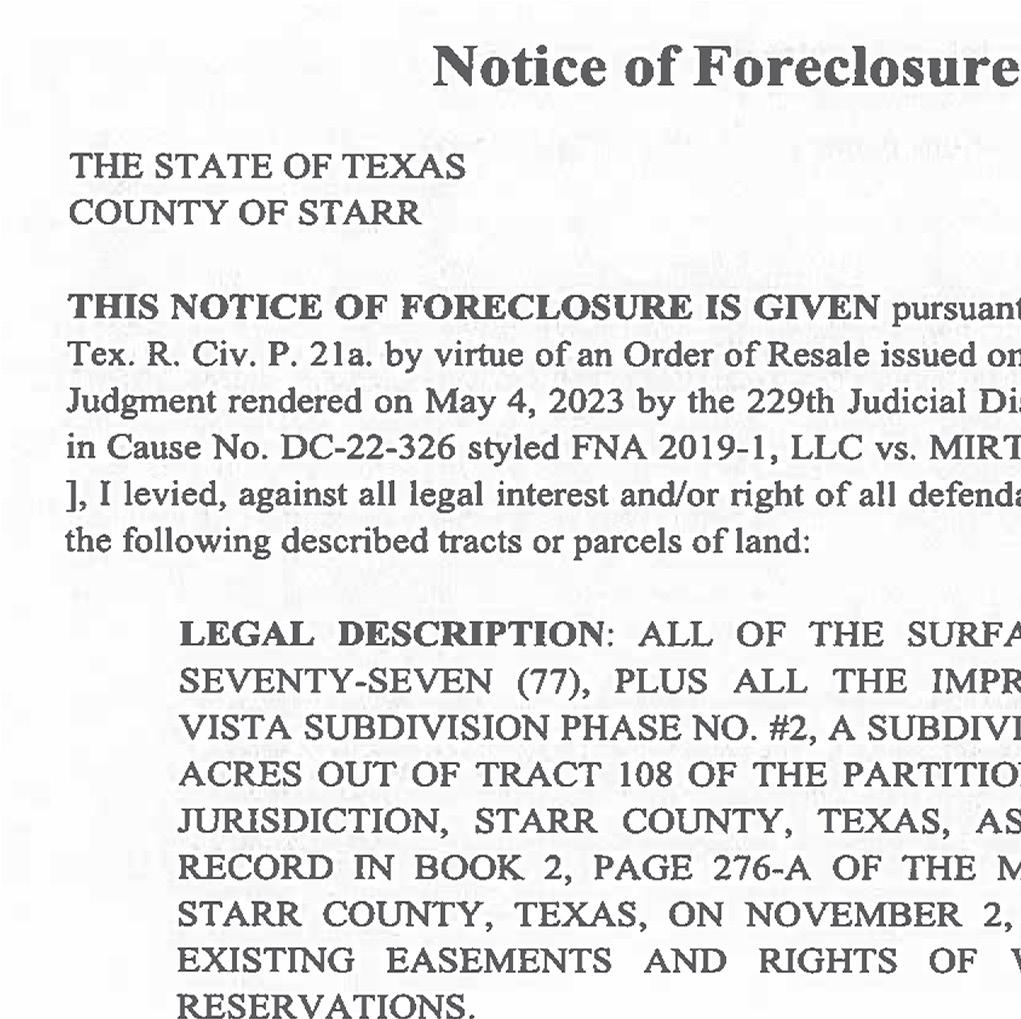 The County of Starr is requesting bids for furnishing all labor, materials, equipment, supervision and performance of all work required for the reconstruction of single family residential homes. The following homes to be reconstructed are: