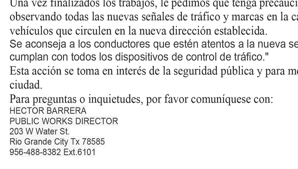 Please direct any questions regarding the preparation of bids to Mr. Eric Flores, City of Rio Grande City Public Utilities Director by calling (956) 487-2702 or via-email eflores@cityofrgc.com. The Engineer can be contacted at the number and address previously listed.