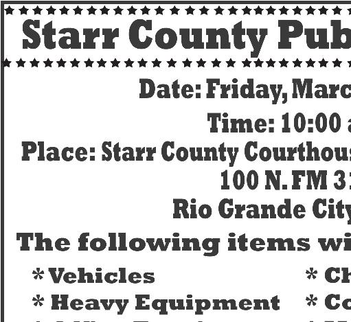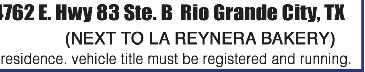 487-2440 300 East Main St. R.G.C. STARR VISION CENTER Dr. Angie Ramirez erapeutic Optometrist 488-0808 280 W. 2nd St. R.G.C. CASTAÑEDA Auto Insurance & Bail Bonds 487-7000 487-2596 4350 E. US HWY 83 R.G.C. • Individual • Partnership • Corporations • LLC’s • Bookkeeping • Payroll • Financial Statements • Form 2290 • IRS Audit Representation Mario A. Méndez, EA Licensed to practice before the IRS (Internal Revenue Service) 317-1124 (956) 201 S. San Antonio. St. Rio Grande City, TX (NEW LOCATION) Vol. 38, No. 12 WEEKLY WEDNESDAY • MARCH 22, 2023 Office (956) 487-6544 - Fax (956) 487-6165 - E-Mail: sctc78582@aol.com - www.starrcountytowncrier.com OPEN MON-SUN 7AM-7PM 956-487-2140 5470 E. HWY 83 R.G.C. TX 956-519-3237 • 6601 W. HWY 83 - MISSION, TX BIG DOOR SALE LARGE SELECTION WE HAVE A NEW LINE OF DOORS AVAILABLE The Law Office Of 956-317-1167 206 N. Britton Ave. Ste.B, R.G.C. jmchemagarza@gmail.com J.M. “Chema” Garza Criminal Cases (Federal/State) Car Accidents/ 18 Wheeler Divorces • Real Estate/Deeds Dr. Raymond Cruz Best FAMILY & COSMETIC DENTISTRY Dental Insurance, Medicaid and Chip Accepted 419 East 2nd St. Rio Grande City, Tx. 487-2999 J.M. “Chuy” Alvarez CHUY Alvarez 501 N. Britton Ave • Rio Grande City, Texas 956-487-4871 Cell: 956-208-0282 NOT CERTIFIED BY THE TEXAS BOARD OF LEGAL SPECIALIZATION ATTORNEY AT LAW 668 E. Grant St. Ste A&B Roma TX 78584-5312 Phone (956) 849-4497 Installment Loans Congratulations to the Roma High Mighty Gladiator Swim & Dive Team on amazing results at the district meet! The boys and girls teams are both district champs, as well as earning many, many places! Congratulations also goes to Roma ISD Coach Clemente Martinez for earning the 2022-2023