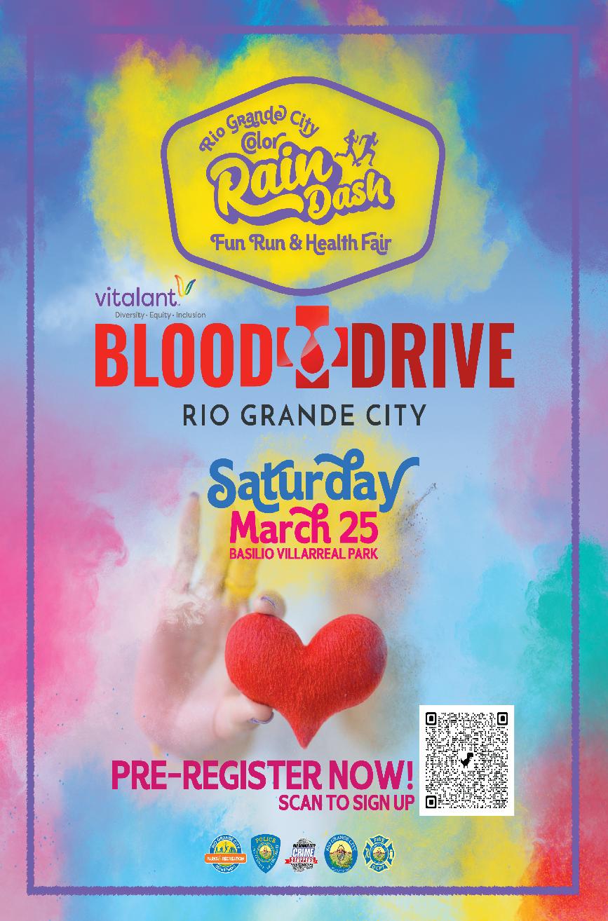 The City of Rio Grande City will be hosting a Color Rain Dash and Health Fair on Saturday, March 25th, from 9am to 1pm at the Basilio Villarreal Municipal Park. Registration for the run will be at 8:30am, with a kids obstacle course to follow, a RGC Police Department vs. RGC Fire Department tug-o-war match, a Vitalant blood drive, FREE exercise classes and health screenings. It’s going to be a fun day for the whole family! For any questions, contact Becky Rubio, Public Relations Specialist, with the City of Rio Grande City.