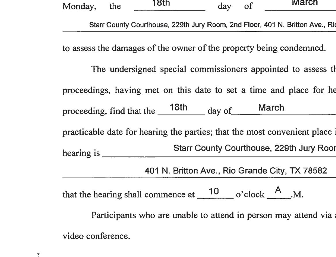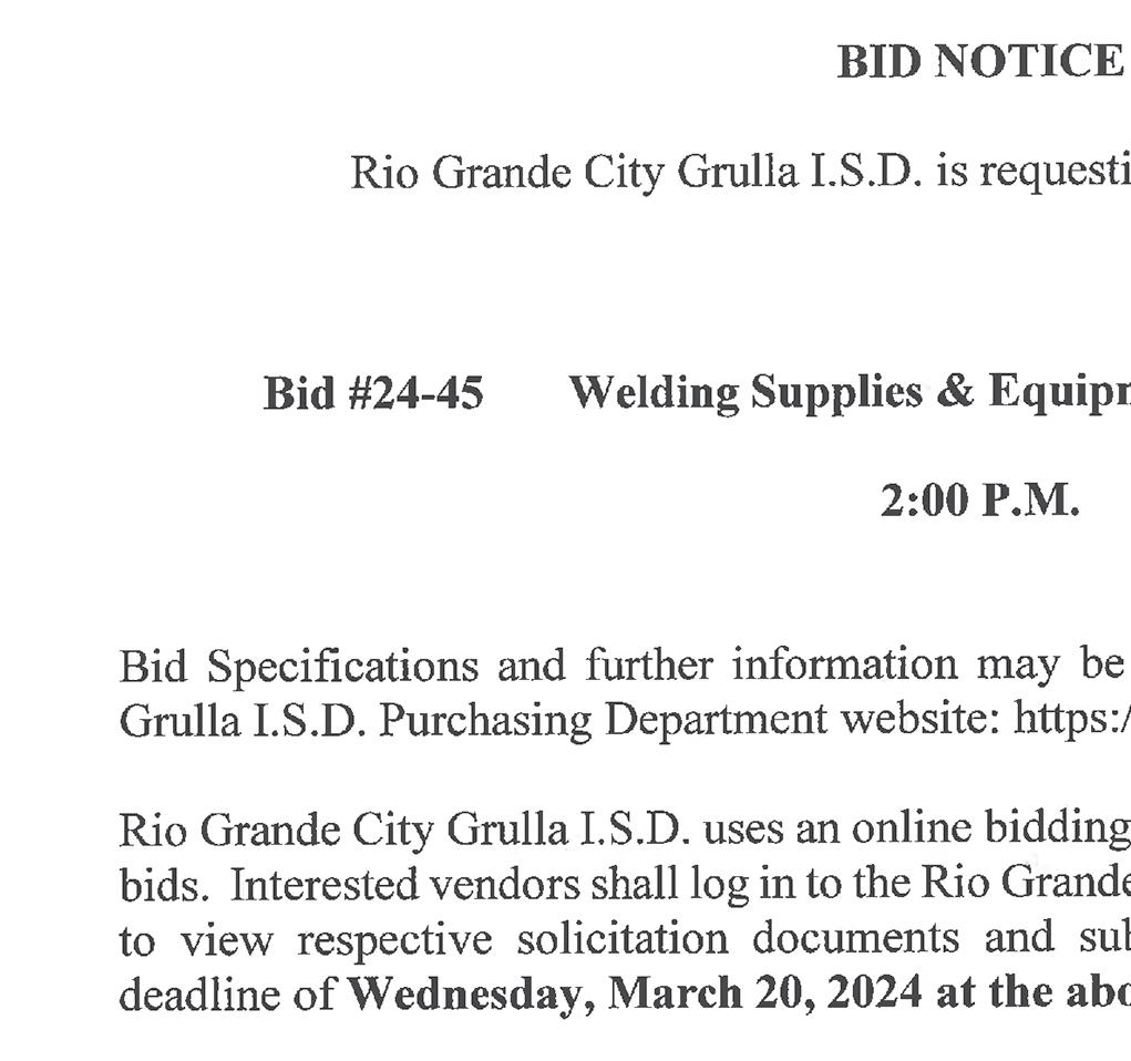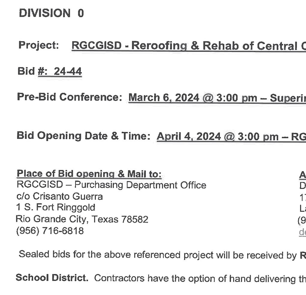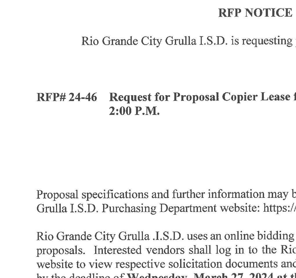Note: Proposals must be received by the County no later than 10:00 am on March 20, 2024, to be considered. The County of Starr reserves the right to negotiate with any and all individuals.