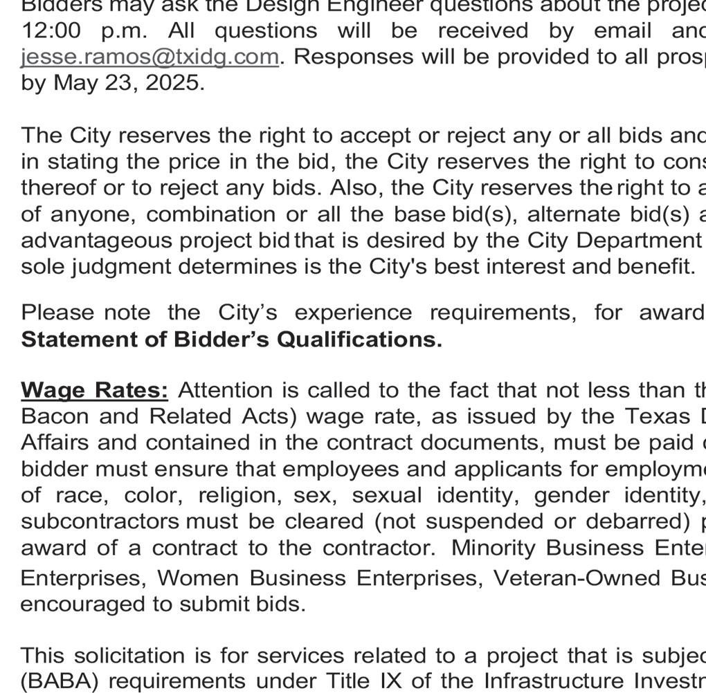 PROPOSAL DEADLINE & May 29th, 2025 @ 3:00 p.m.