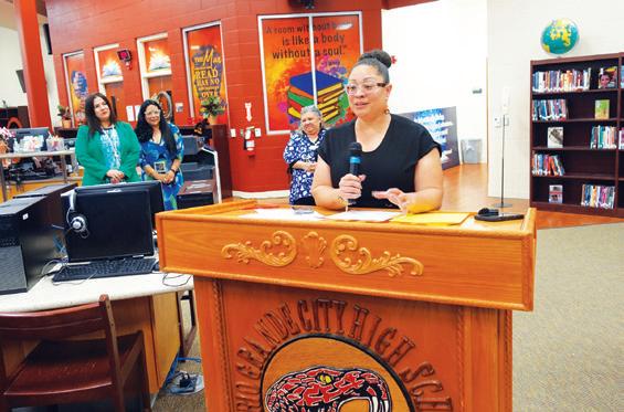 The Texas Department of Health and Human Services from the Rio Grande City Sector and from Austin Texas were elated to see 6 high school students celebrated by the RGCGISD CTE department as they embark on a full time career this June with the TDHHS. This grant program is the second in the state of Texas to be piloted by Rio Grande City CTE. Guests and distinguished speakers were introduced by Mrs. Danielle Brown from Austin, Texas and welcomed by Mrs. Maribel Montemayor RHS principal and her administrative staff.