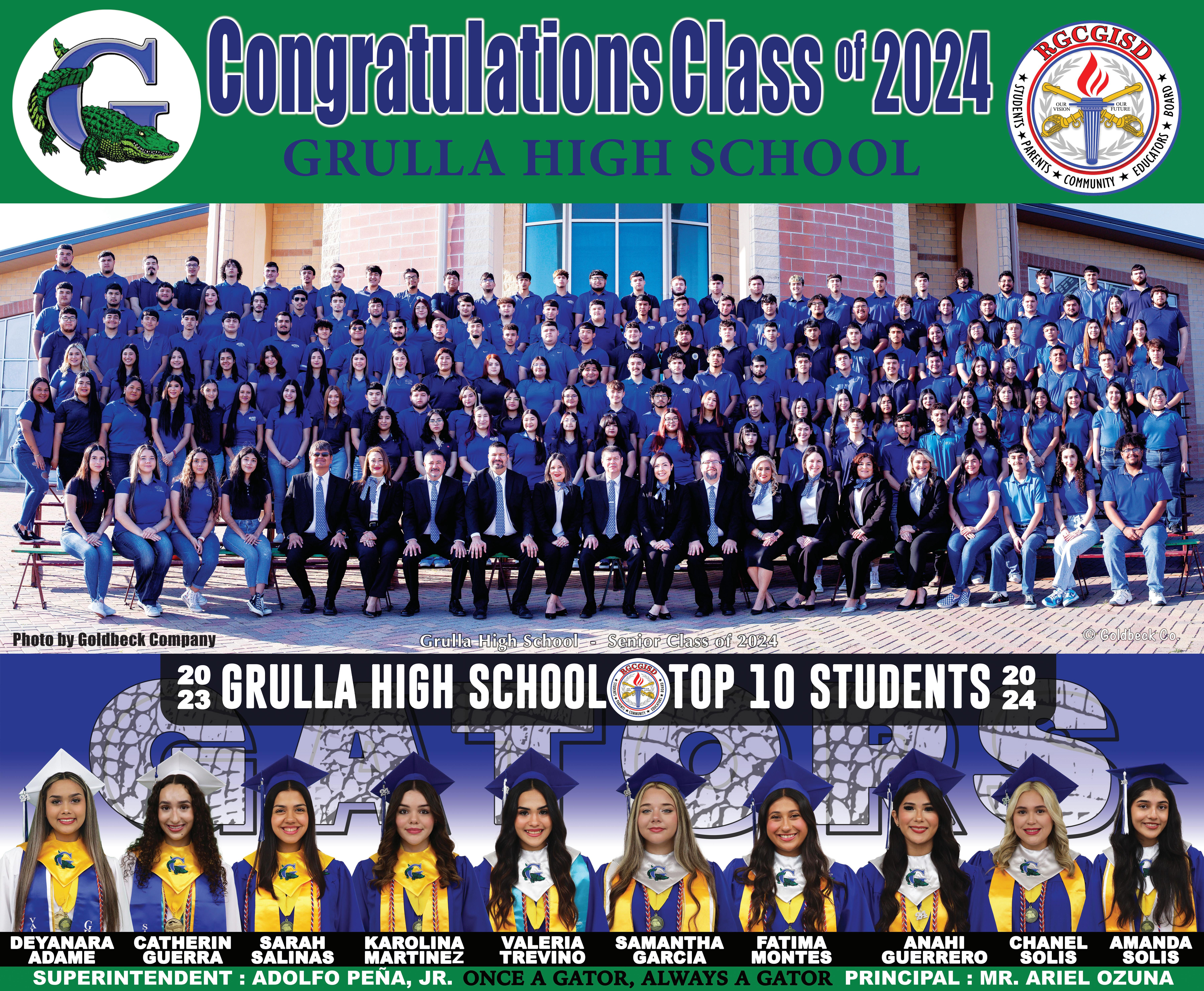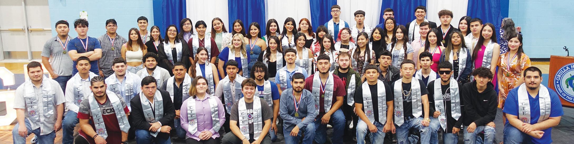 The Grulla High School banquet took place on May 13, 2024, at the GHS main gym. Mistress of ceremony was Mrs. Agueda Garza- CTE counselor for the 3 high schools. Welcoming the students were Mr. Ariel Ozuna- Principal and the Grulla administrative staff and Mrs. Adelina G. VillarrealCTE Director.