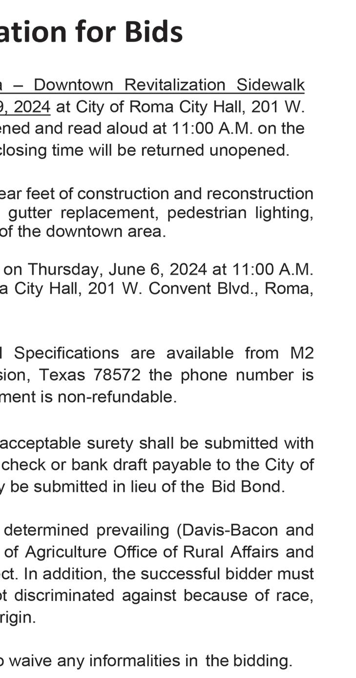 Written comments must be received by Starr County at the following address on or before June 14, 2024: Starr County, 100 North FM 3167, Rio Grande City, Texas 78582, Attention: Ms. Connie Cantu, Project Manager, during the hours of 8:00 AM to 5:00 PM. Comments may also be submitted via email at ccantu@co.starr.tx.us