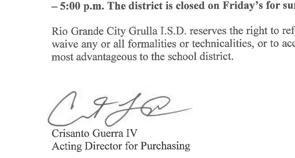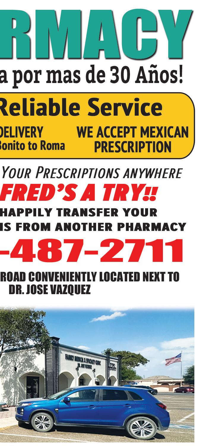 487-2440 300 East Main St. R.G.C. STARR VISION CENTER Dr. Angie Ramirez erapeutic Optometrist 488-0808 280 W. 2nd St. R.G.C. CASTAÑEDA Auto Insurance & Bail Bonds 487-7000 487-2596 4350 E. US HWY 83 R.G.C. • Individual • Partnership • Corporations • LLC’s • Bookkeeping • Payroll • Financial Statements • Form 2290 • IRS Audit Representation Mario A. Méndez, EA Licensed to practice before the IRS (Internal Revenue Service) 317-1124 (956) 201 S. San Antonio. St. Rio Grande City, TX (NEW LOCATION) Vol. 39, No. 22 WEEKLY - WEDNESDAY • MAY 29, 2024 The Law Office Of 956-317-1167 206 N. Britton Ave. Ste.B, R.G.C. jmchemagarza@gmail.com J.M. “Chema” Garza Criminal Cases (Federal/State) Car Accidents/ 18 Wheeler Divorces • Real Estate/Deeds Dr. Raymond Cruz Best FAMILY & COSMETIC DENTISTRY Dental Insurance, Medicaid and Chip Accepted 419 East 2nd St. Rio Grande City, Tx. 487-2999 J.M. “Chuy” Alvarez CHUY Alvarez 501 N. Britton Ave • Rio Grande City, Texas 956-487-4871 Cell: 956-208-0282 NOT CERTIFIED BY THE TEXAS BOARD OF LEGAL SPECIALIZATION ATTORNEY AT LAW 668 E. Grant St. Ste A&B Roma TX 78584-5312 Phone (956) 849-4497 Installment Loans Office (956) 487-6544 • E-Mail: sctc78582@aol.com • issuu.com/starrcountytowncrier City of Rio Grande City Henry Clay Davis Chapter VFW Memorial Day Service - Rio Grande City City of Roma and Roma VFW Post#9175 City of Escobares MEMORIAL DAY CEREMONIES IN STARR COUNTY